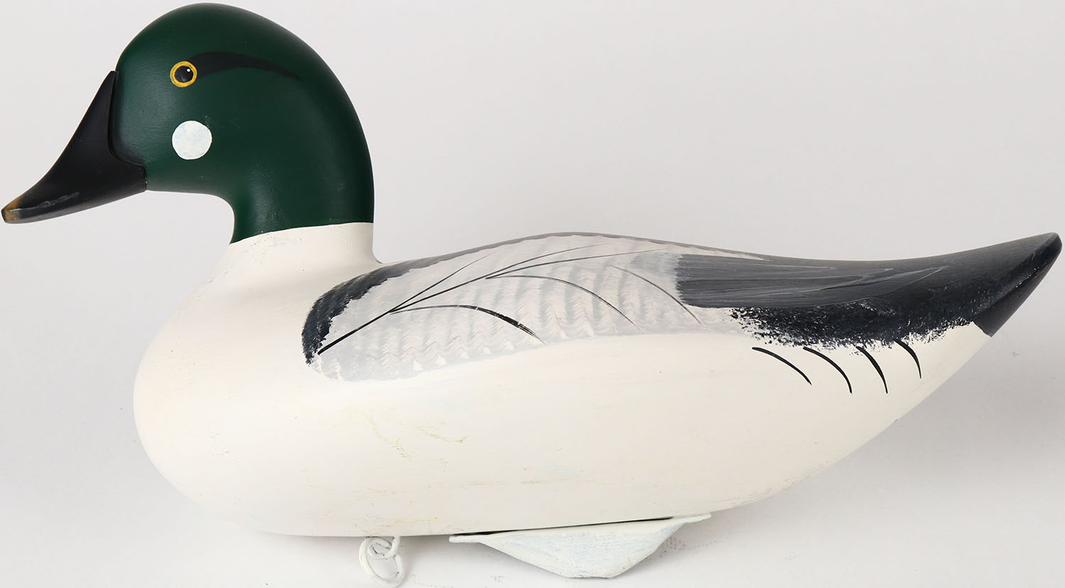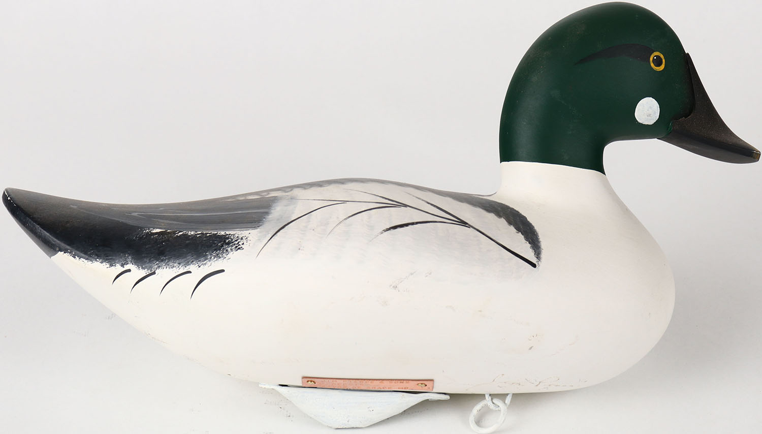 Goldeneye Drake by Jim Pierce, Havre de Grace, MD painted eyes, solid wood, structurally excellent, signed and branded on bottom, original paint. Grade: MINT $50 - $150 - Value: 50 to 150