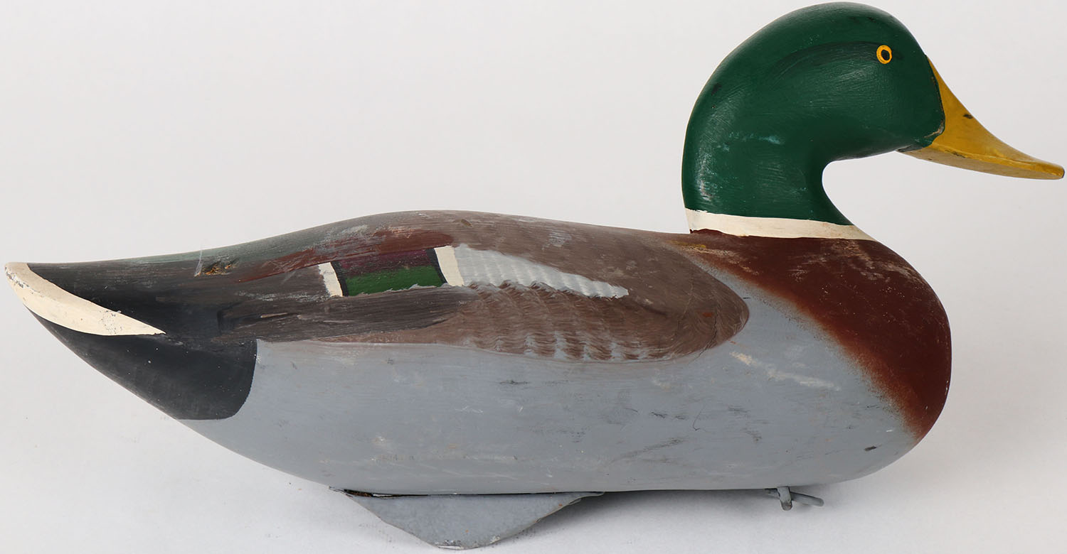 Mallard Drake by unknown maker, Havre de Grace, MD, painted eyes, solid wood, structurally excellent, original paint. Grade: Excellent + - Value: 50 to 150