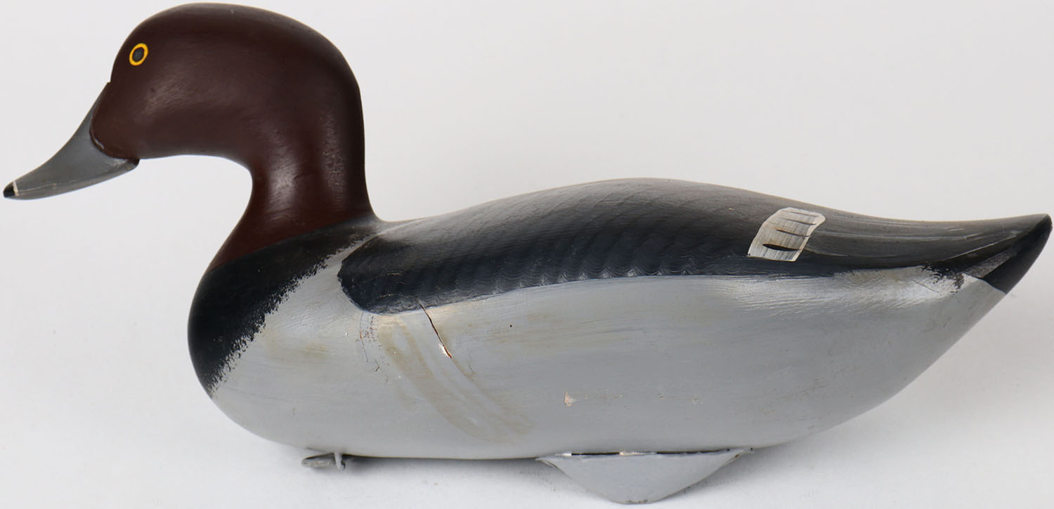 Redhead Drake by Dave Walker Havre de Grace, MD, painted eyes, solid wood, structurally excellent, branded WALKER on bottom, original paint. Grade: Excellent + - Value: 50 to 150