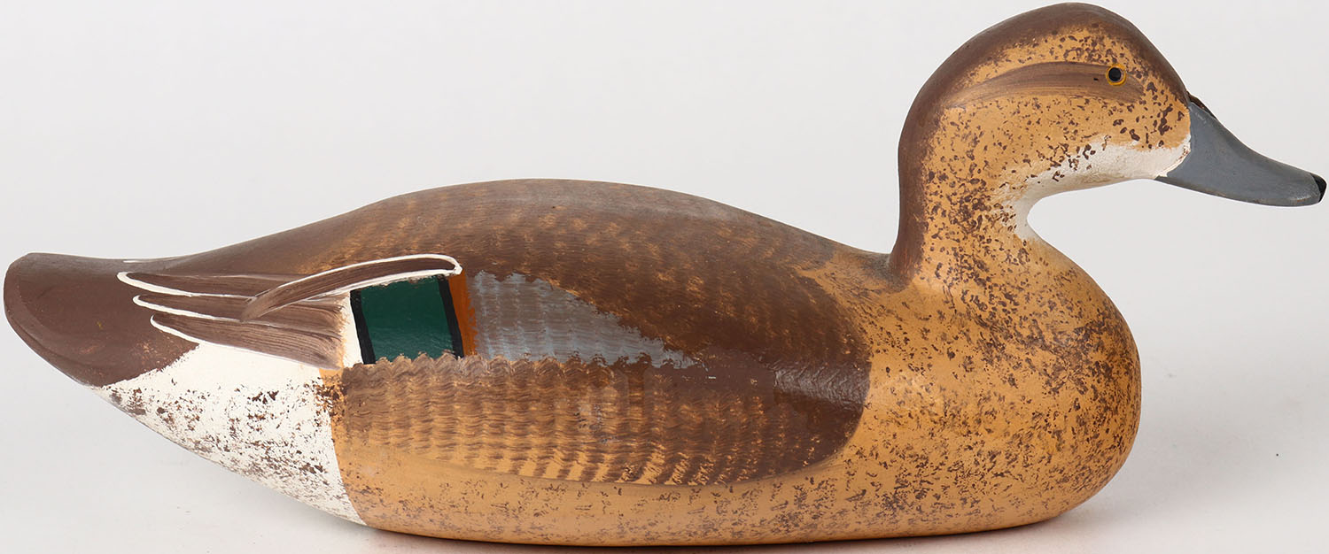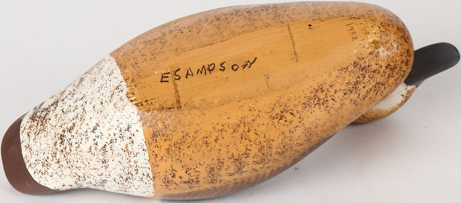 Mallard Hen by E Sampson, painted eyes, solid wood, structurally excellent, signed on bottom, original paint. Grade: MINT - Value: 50 to 100