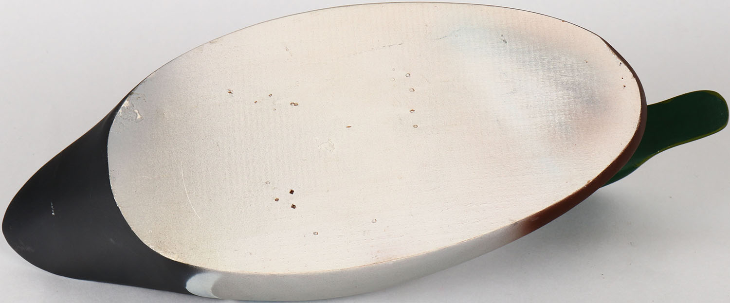 Mallard Drake by unknown maker, glass eyes, solid wood, structurally excellent, original airbrushed? paint. Grade: Excellent + - Value: 30 to 60