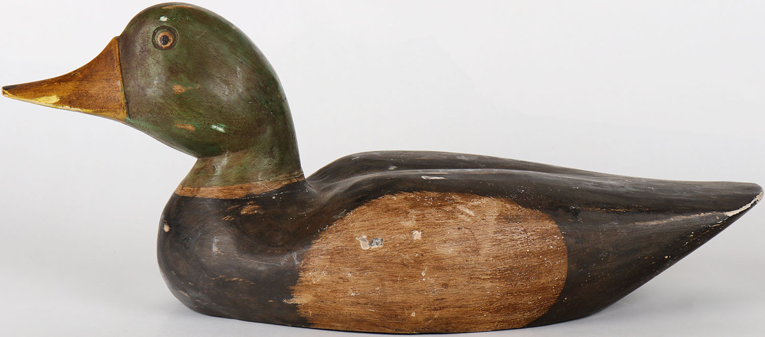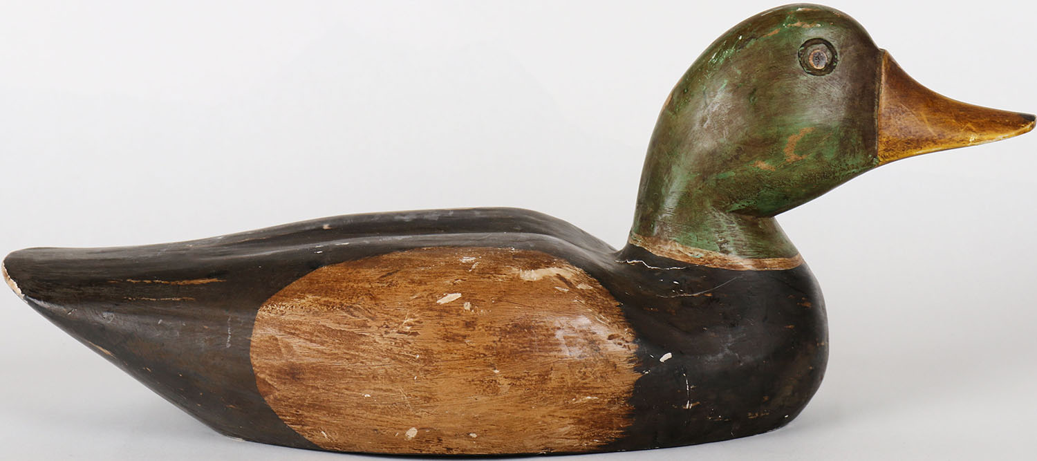 Mallard or Redhead Drake by unknown maker, painted eyes, hollow wood, structurally excellent, original paint. Grade: Very Good ++ - Value: 20 to 40