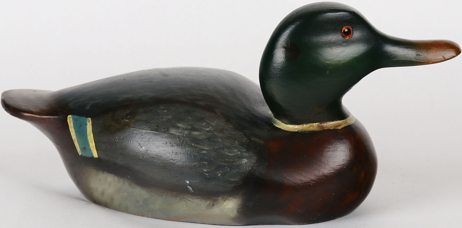 Mallard Drake by unknow maker, (note with 1982 date) glass eyes, solid wood, structurally excellent, original paint. Grade: MINT - Value: 20 to 40