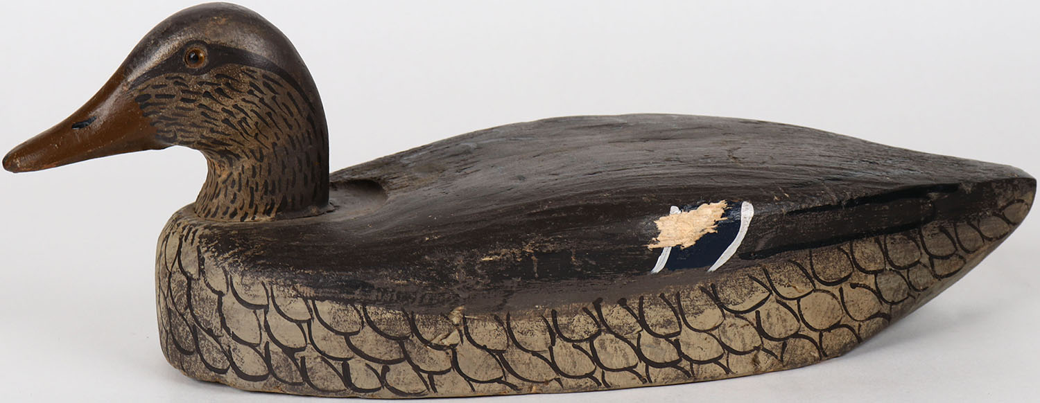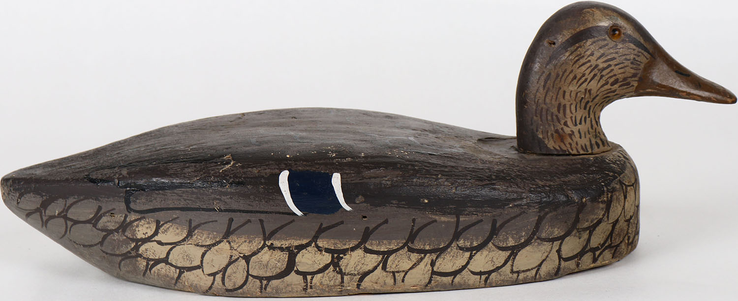 Mallard Hen by unknown maker (Herter's), glass eyes, solid balsa wood, structurally excellent, original paint. Grade: Very Good ++ - Value: 30 to 60