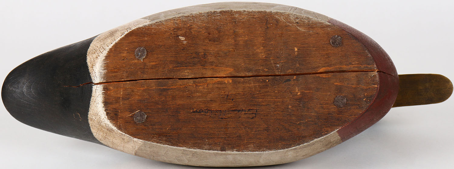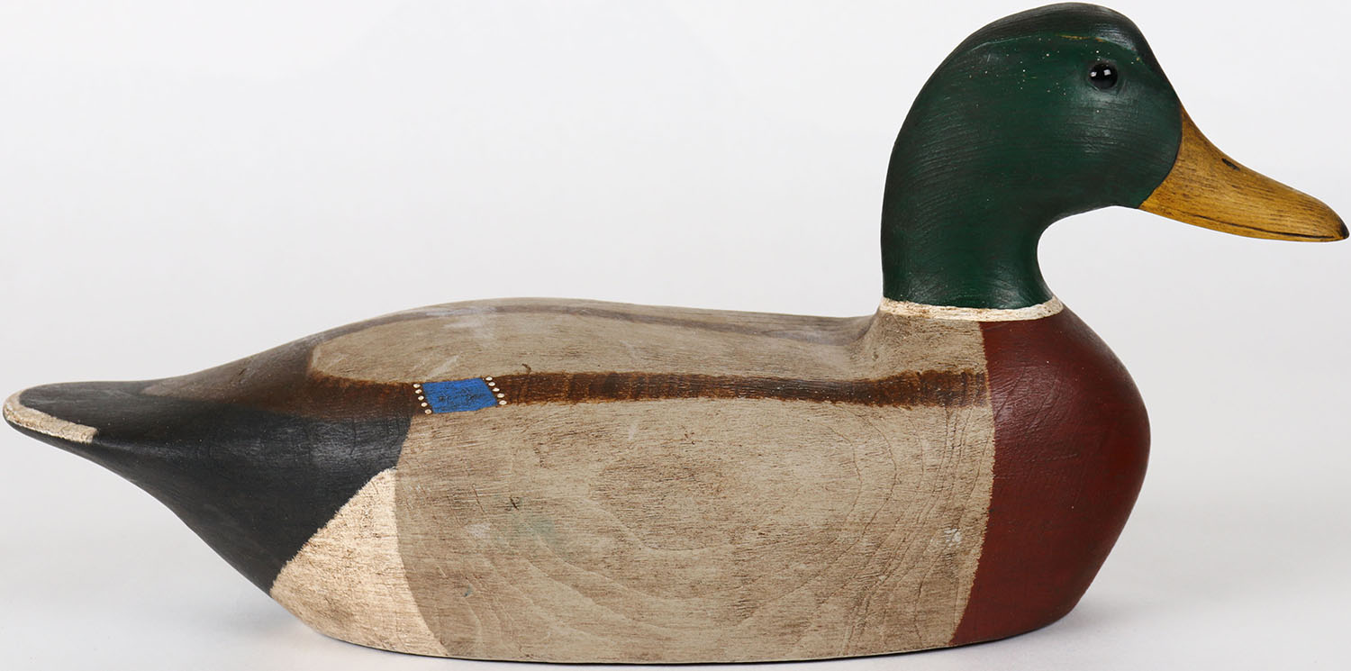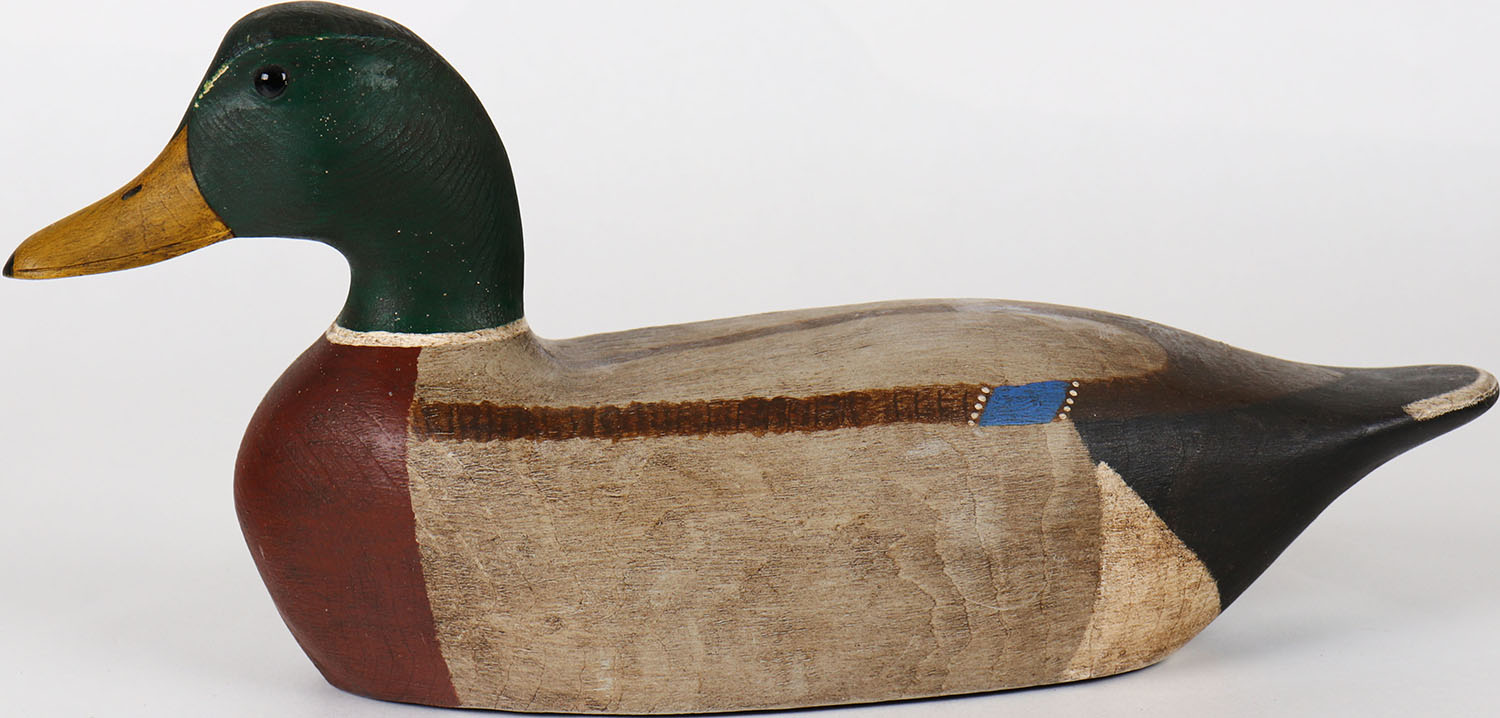 Mallard Drake by Eric Nelson, glass eyes, solid wood, structurally excellent, signed on bottom, original paint. Grade: Excellent ++ - Value: 40 to 80