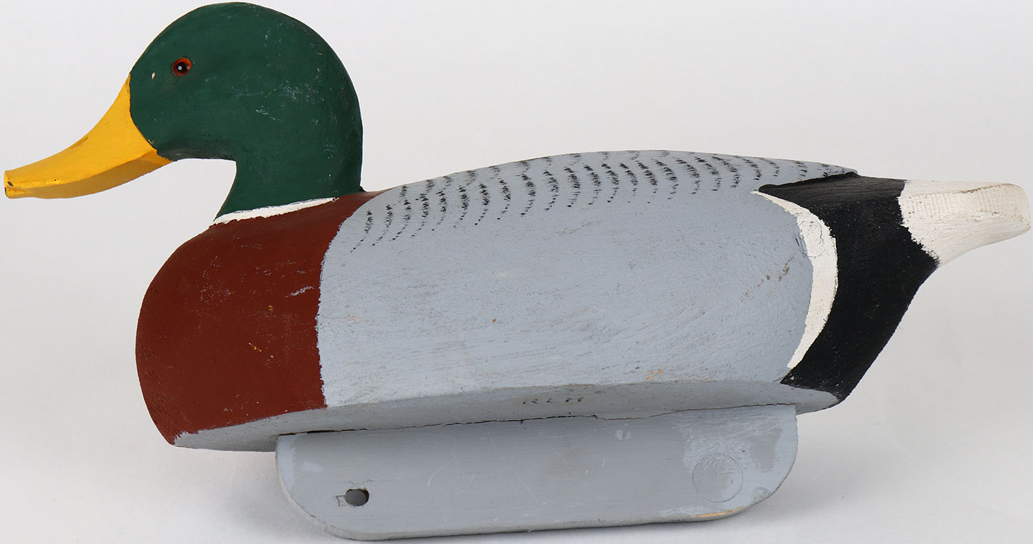 Mallard Drake by RLH, glass eyes, solid wood, structurally excellent, branded RLH on bottom, original paint. Grade: Excellent + - Value: 30 to 60