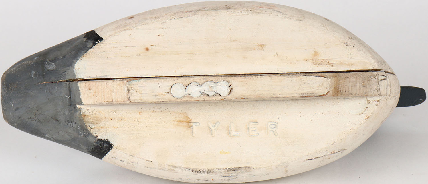Bufflehead Drake by Tyler, glass eyes, solid wood, structurally excellent, branded TYLER on bottom, original paint. Grade: Excellent - Value: 30 to 60