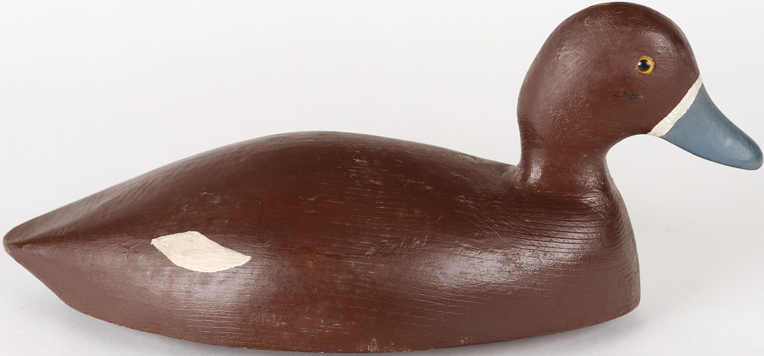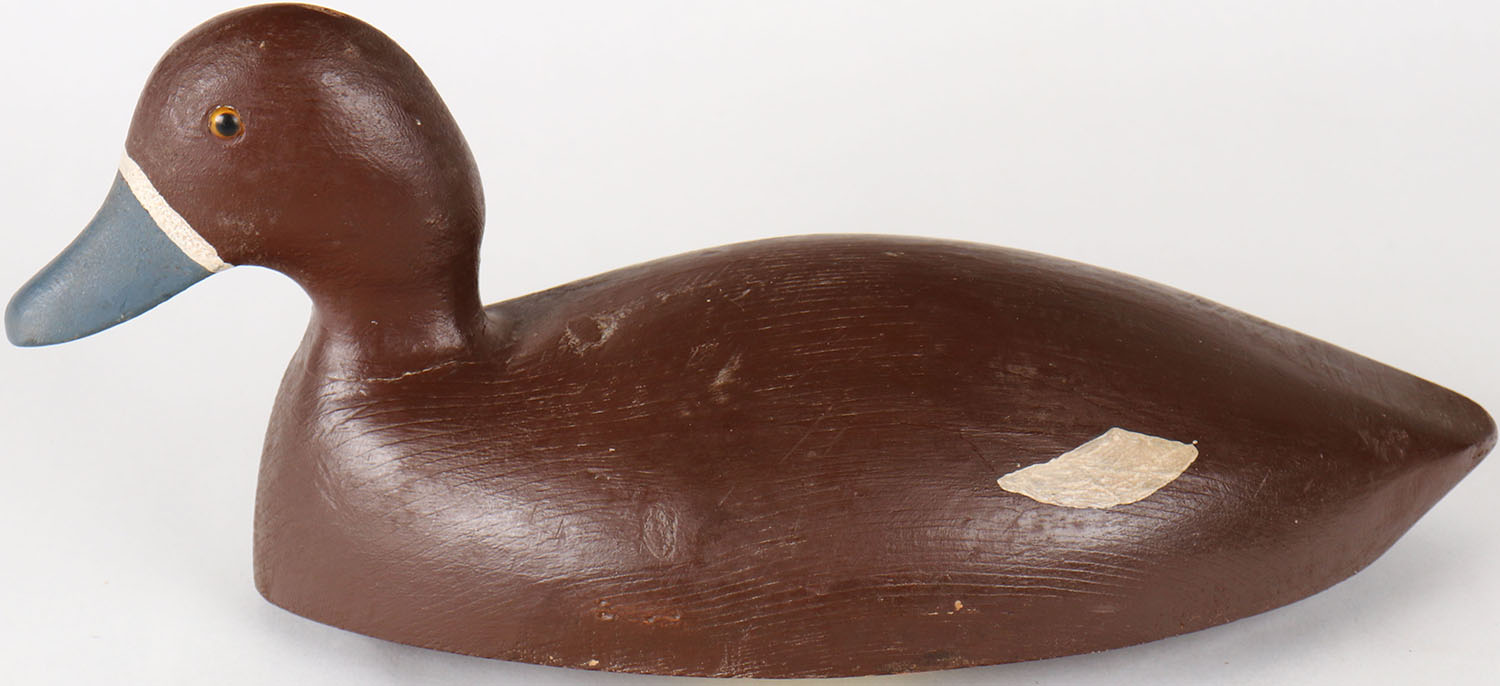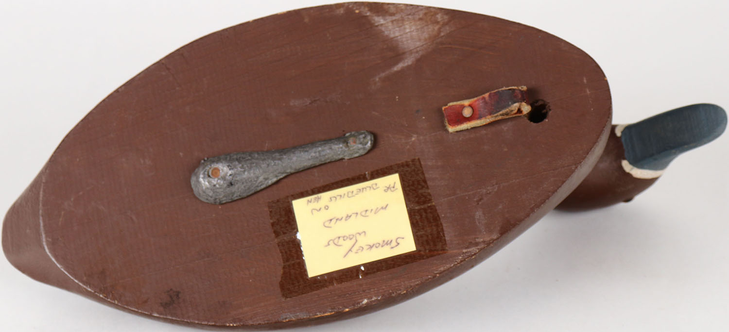 Bluebill Hen by unknown maker, Smokey Woods, Midland, glass eyes, solid wood, structurally excellent, original paint. Grade: Excellent - Value: 20 to 40