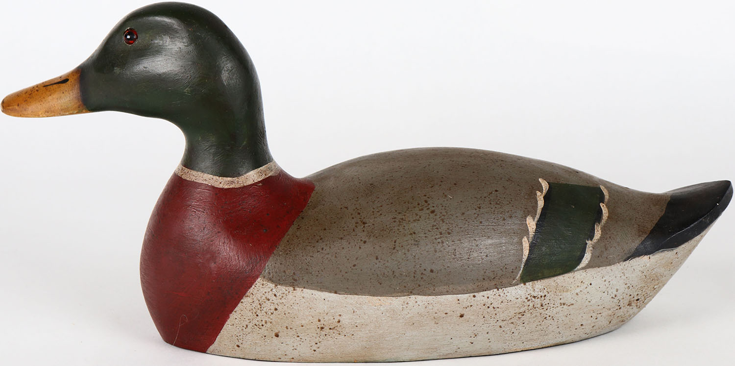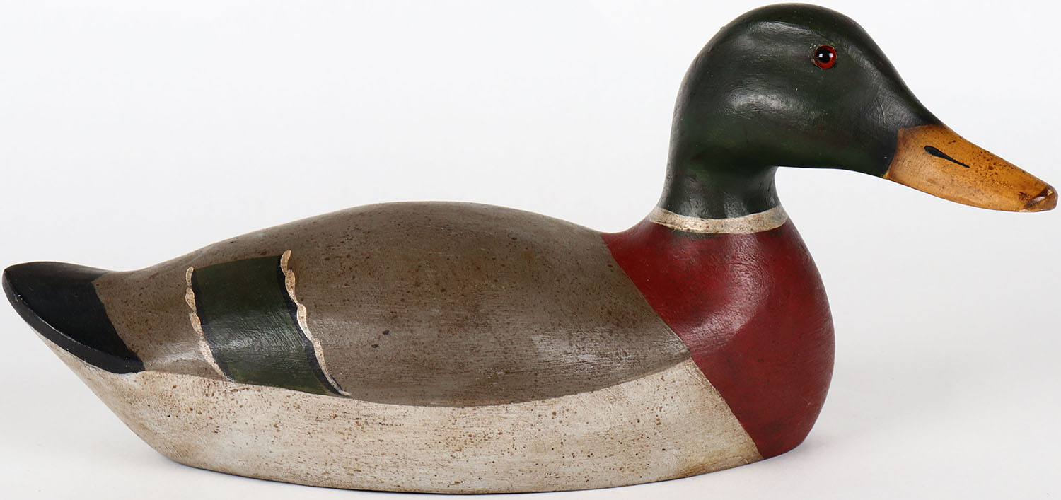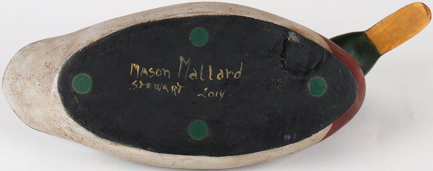 Mallard Drake by Stewart, glass eyes, solid wood, structurally excellent, original paint. Grade: MINT - Value: 70 to 150