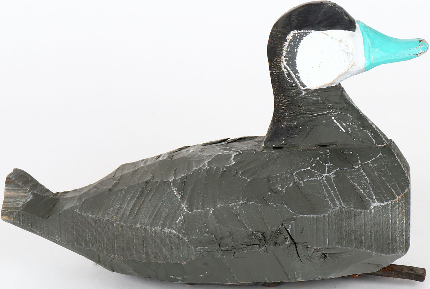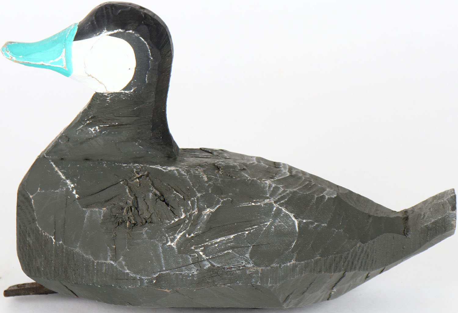 Ruddy Duck by unknown maker, no eyes, solid wood, structurally excellent, original paint. Grade: Very Good ++ - Value: 20 to 40