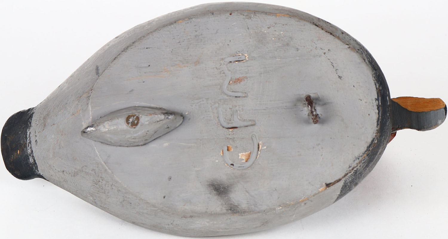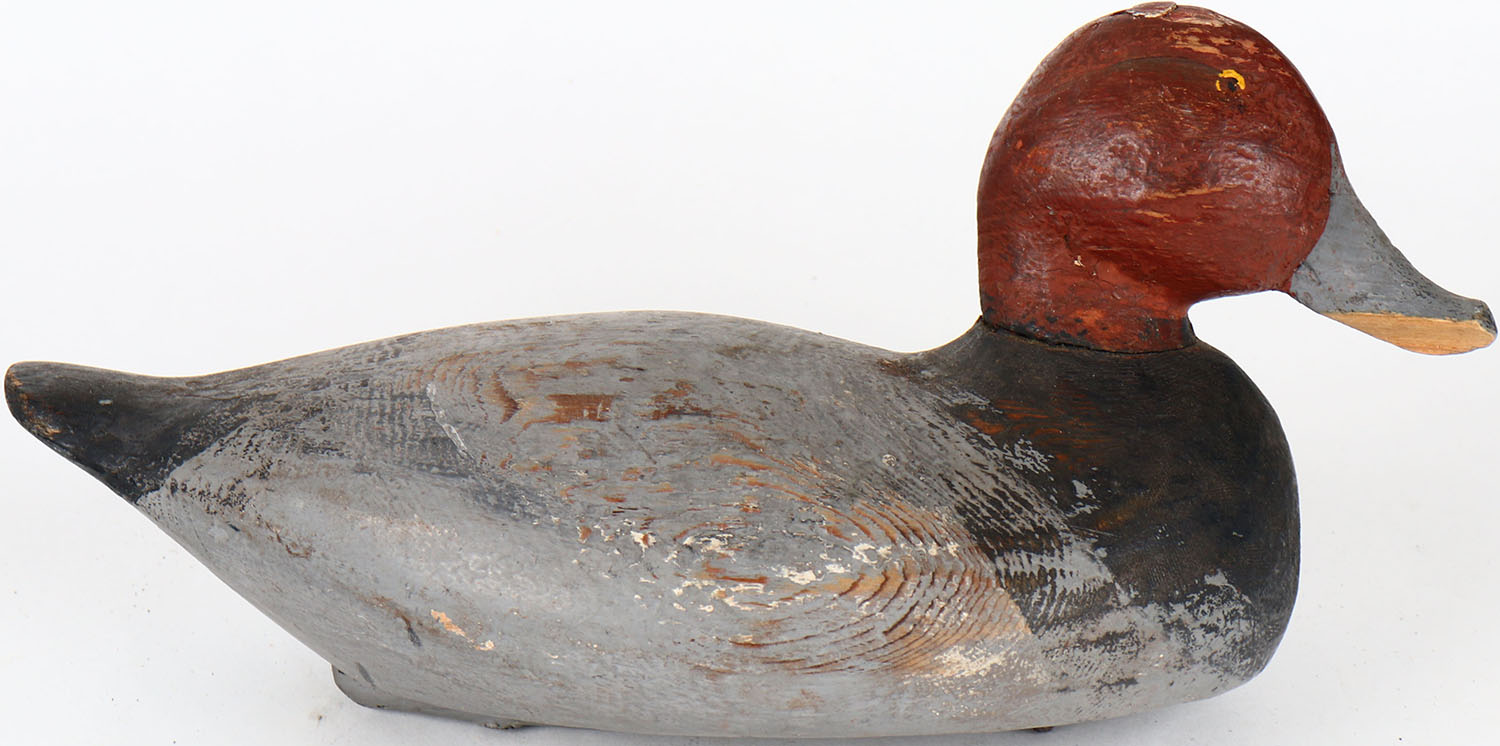 Redhead Drake by CFM, VA/MD? painted eyes, solid wood, structurally excellent, branded CFM on bottom, original paint. Grade: Very Good + - Value: 20 to 40