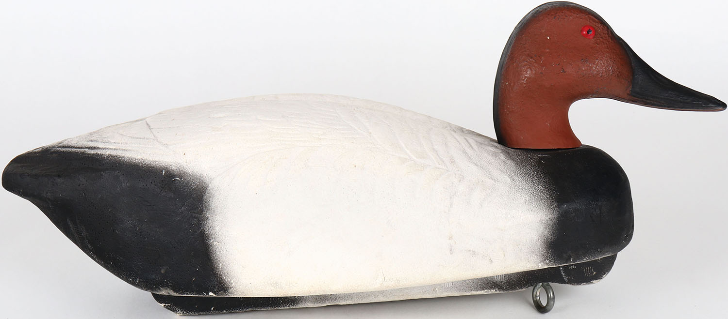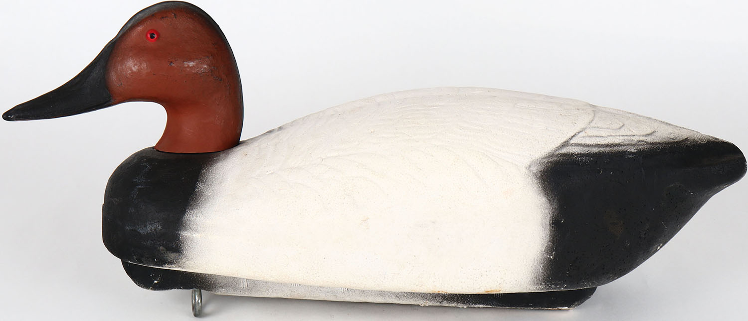 Canvasback Drake by unknown maker, Herter's, painted eyes, solid styrofoam, structurally excellent, original paint. Grade: MINT - Value: 10 to 30