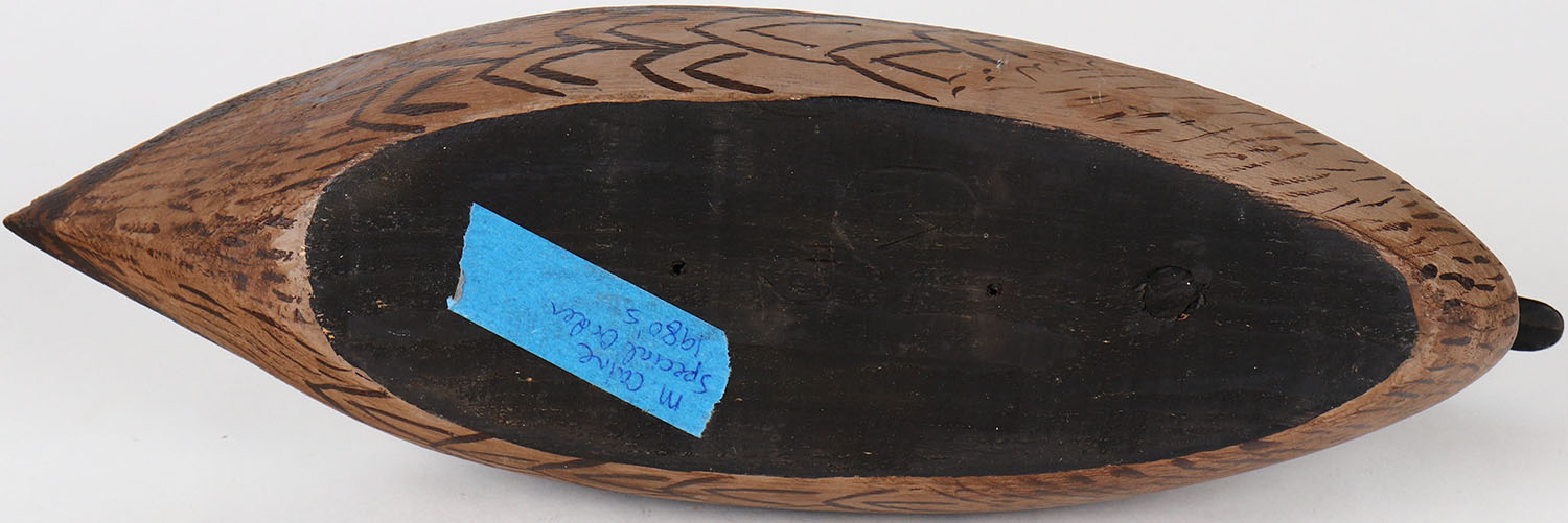 Pintail Hen by Maynard Caine, (Special Order 1980s), Ontario, Canada, glass eyes, solid wood, structurally excellent, signed and branded on bottom, original paint. Grade: MINT - Value: 40 to 100