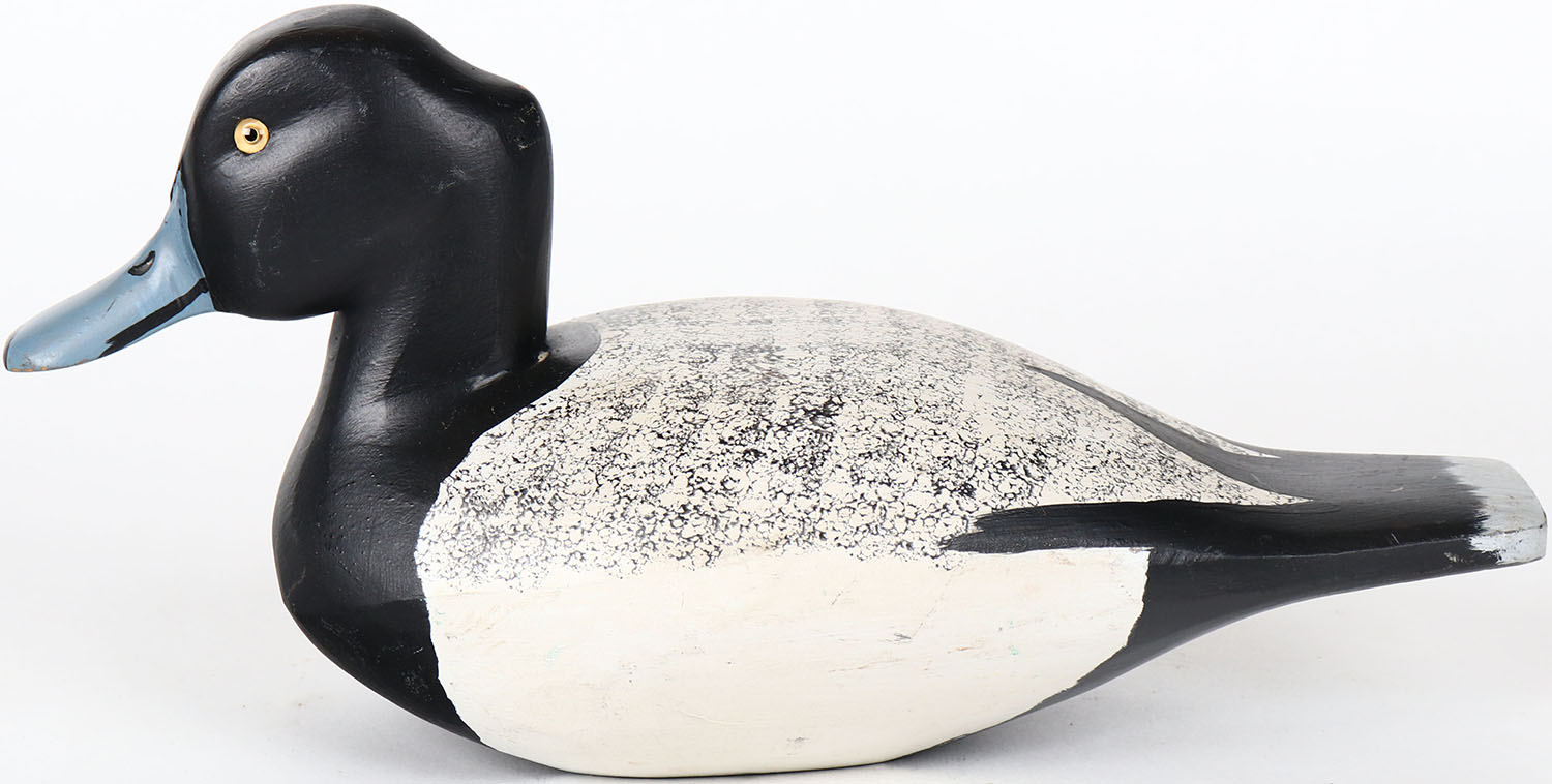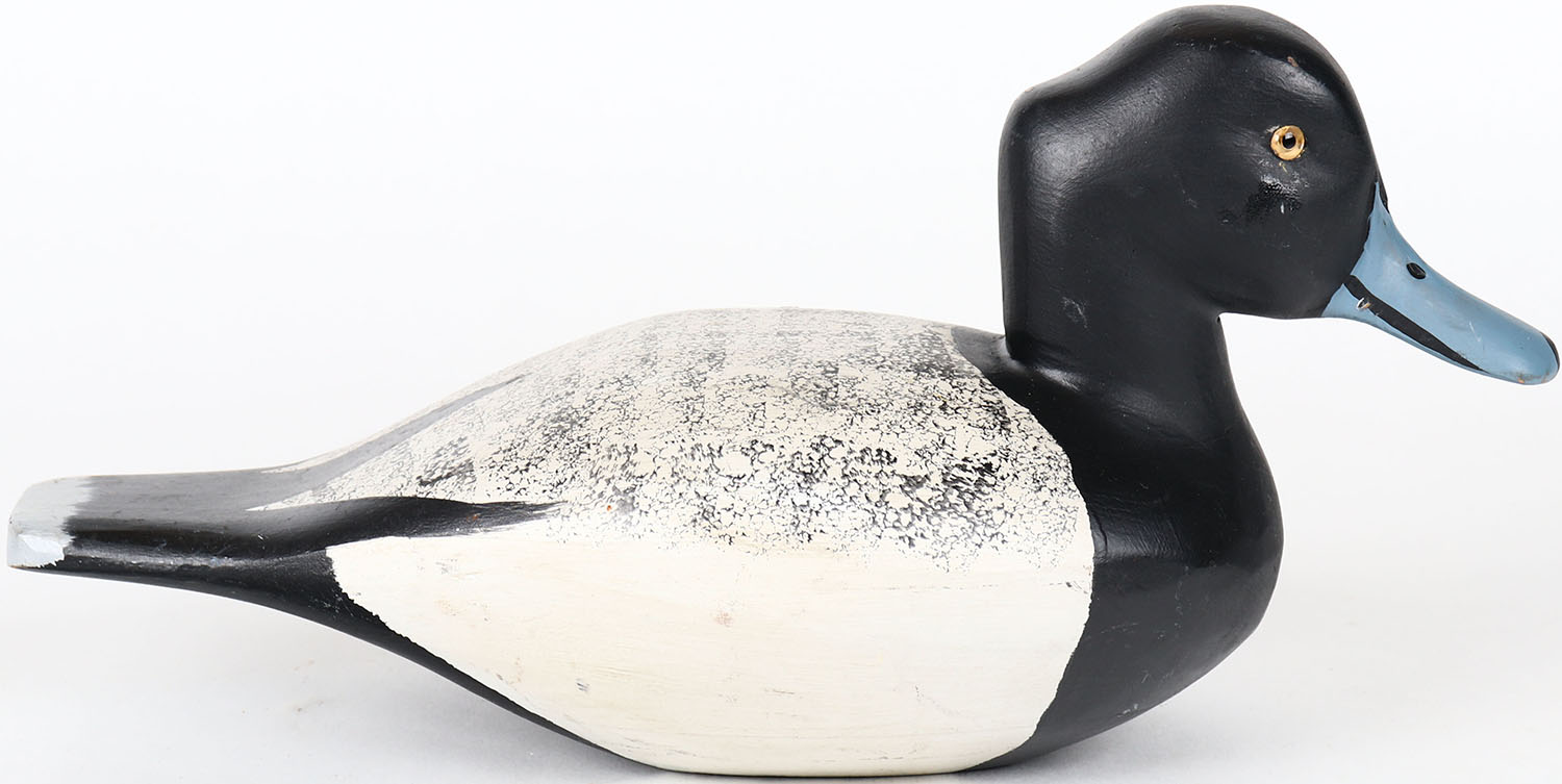 Bluebill Drake by unknown maker, glass eyes, solid wood, structurally excellent, original paint. Grade: MINT - Value: 20 to 40
