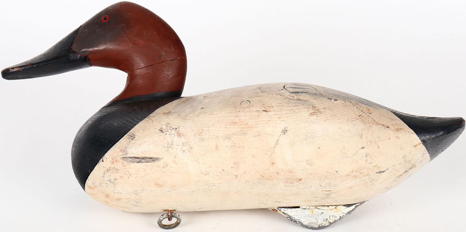 Canvasback Drake by unknown maker, Havre de Grace, MD, painted eyes, solid wood, structurally excellent, original paint. Grade: Excellent - Value: 100 to 200