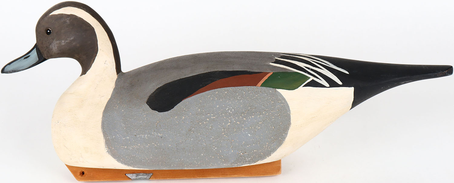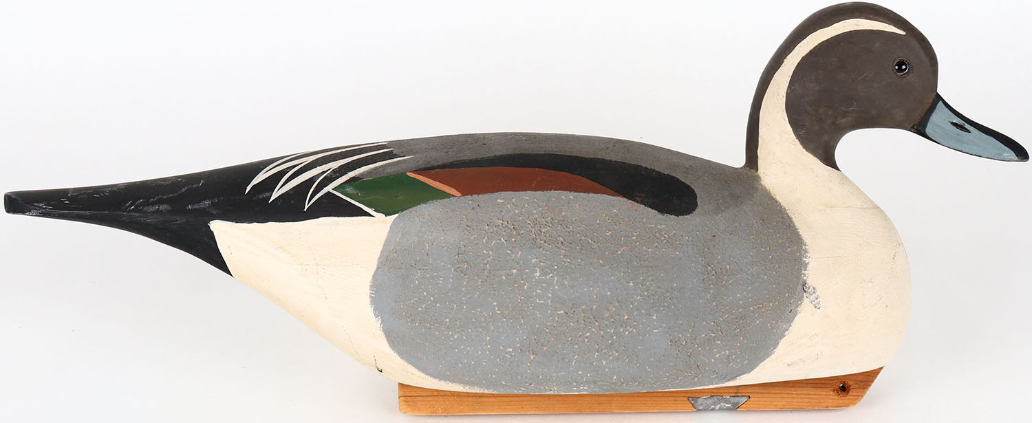 Pintail Drake by RGB, glass eyes, hollow wood, structurally excellent, branded RGB on bottom, original paint. Grade: MINT - Value: 30 to 60