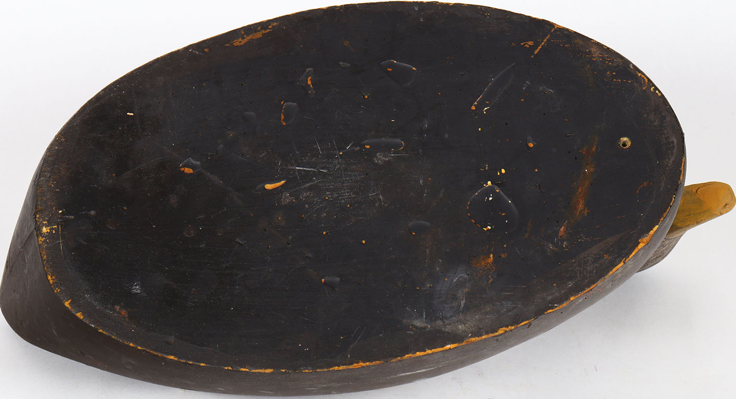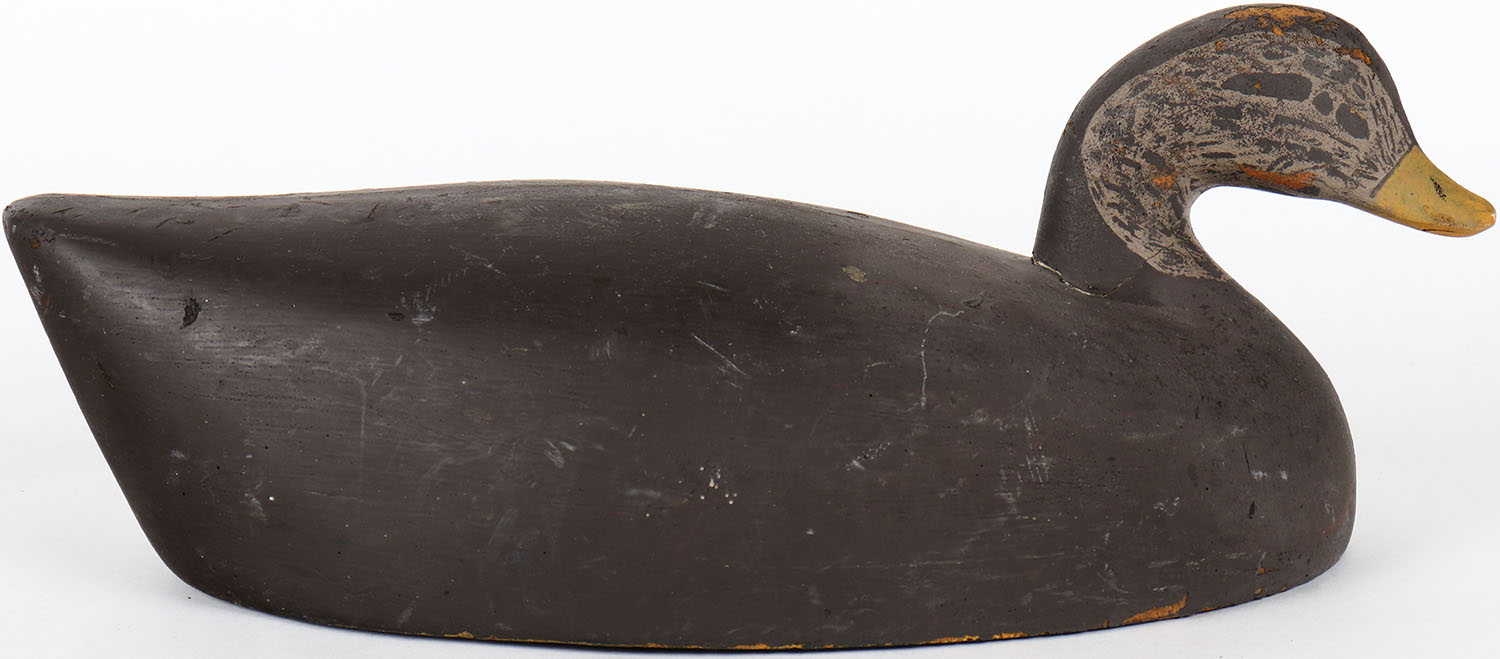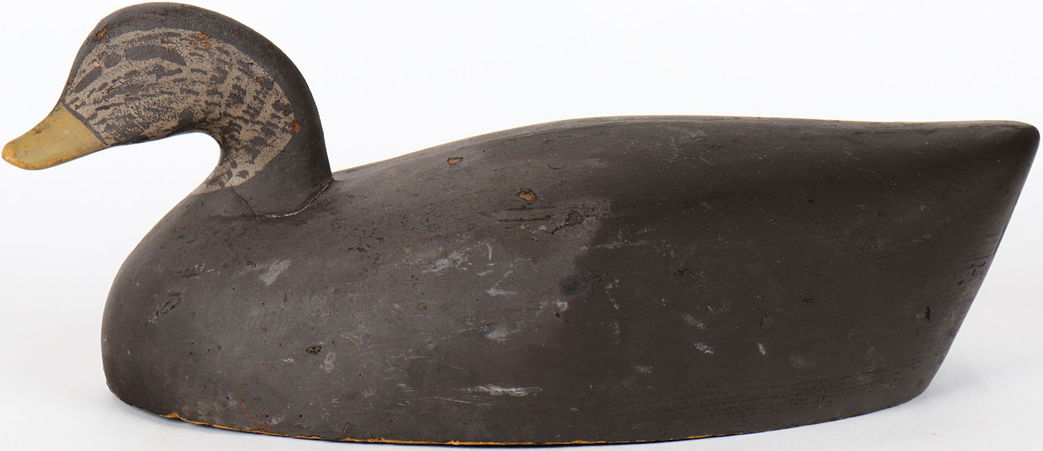 Black Duck by unknown maker, glass eyes, hollow wood, structurally excellent, original paint. Grade: Very Good ++ - Value: 30 to 60