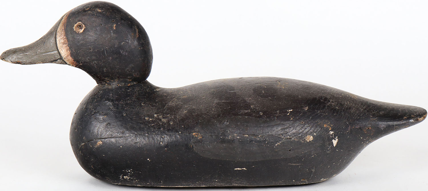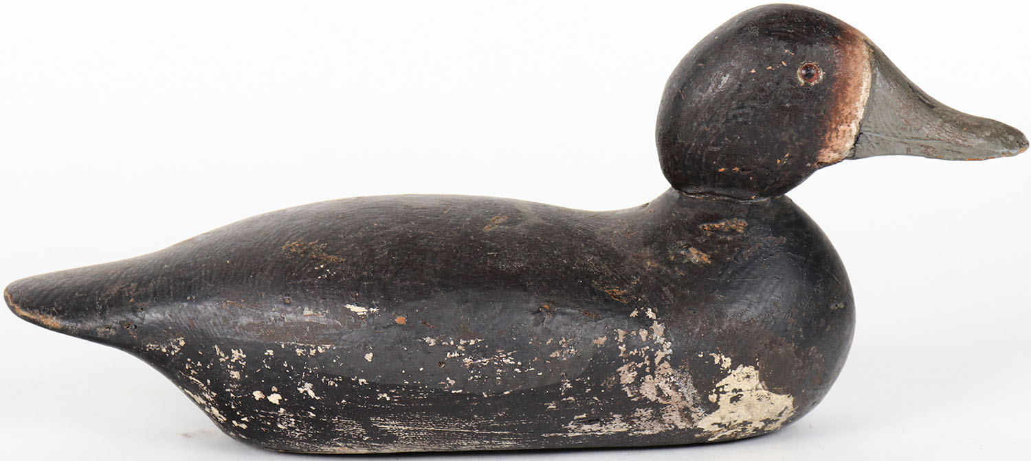 Bluebill Drake by unknown maker, glass eyes, solid wood, structurally excellent, original paint. Grade: Very Good ++ - Value: 40 to 80
