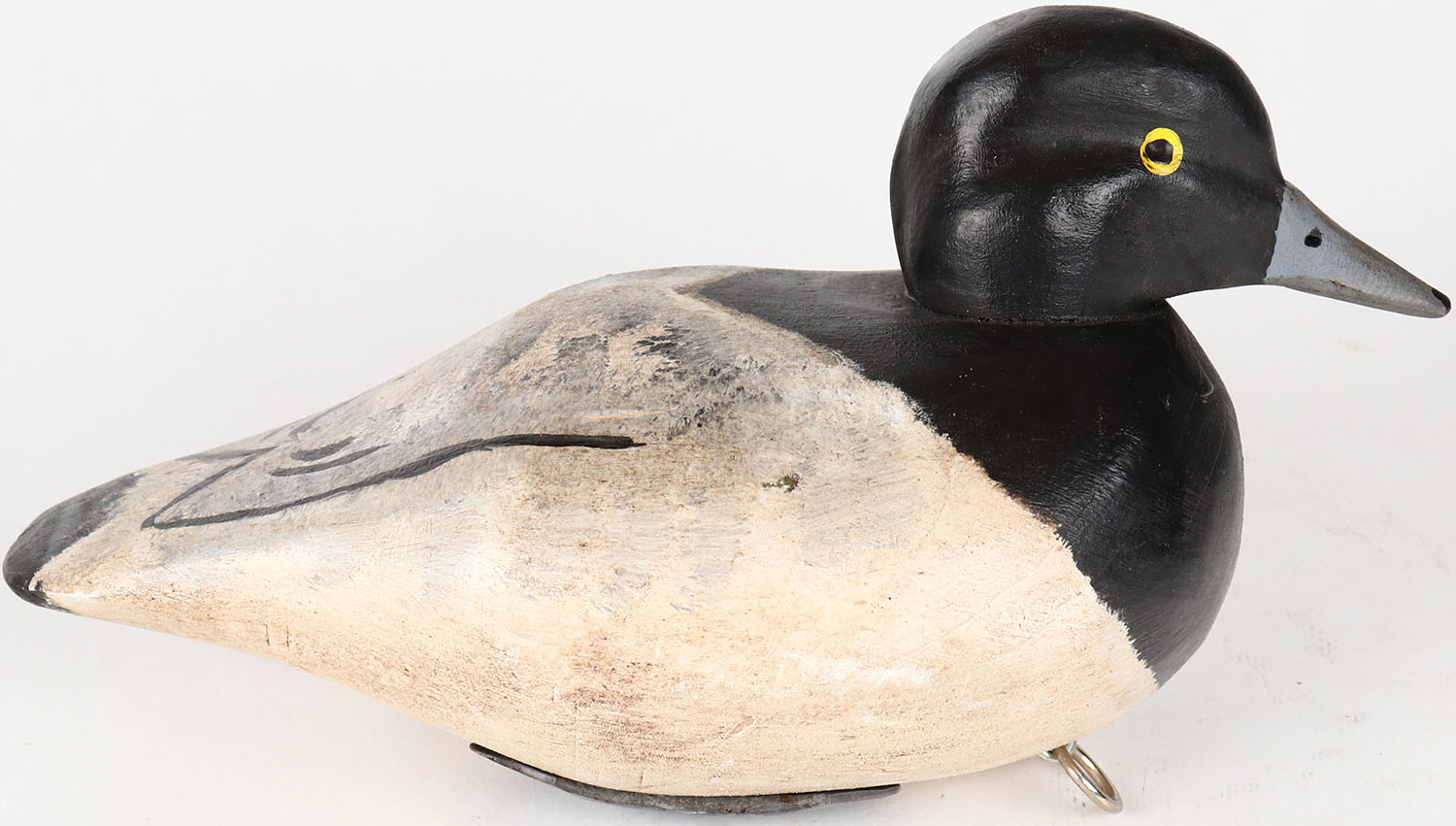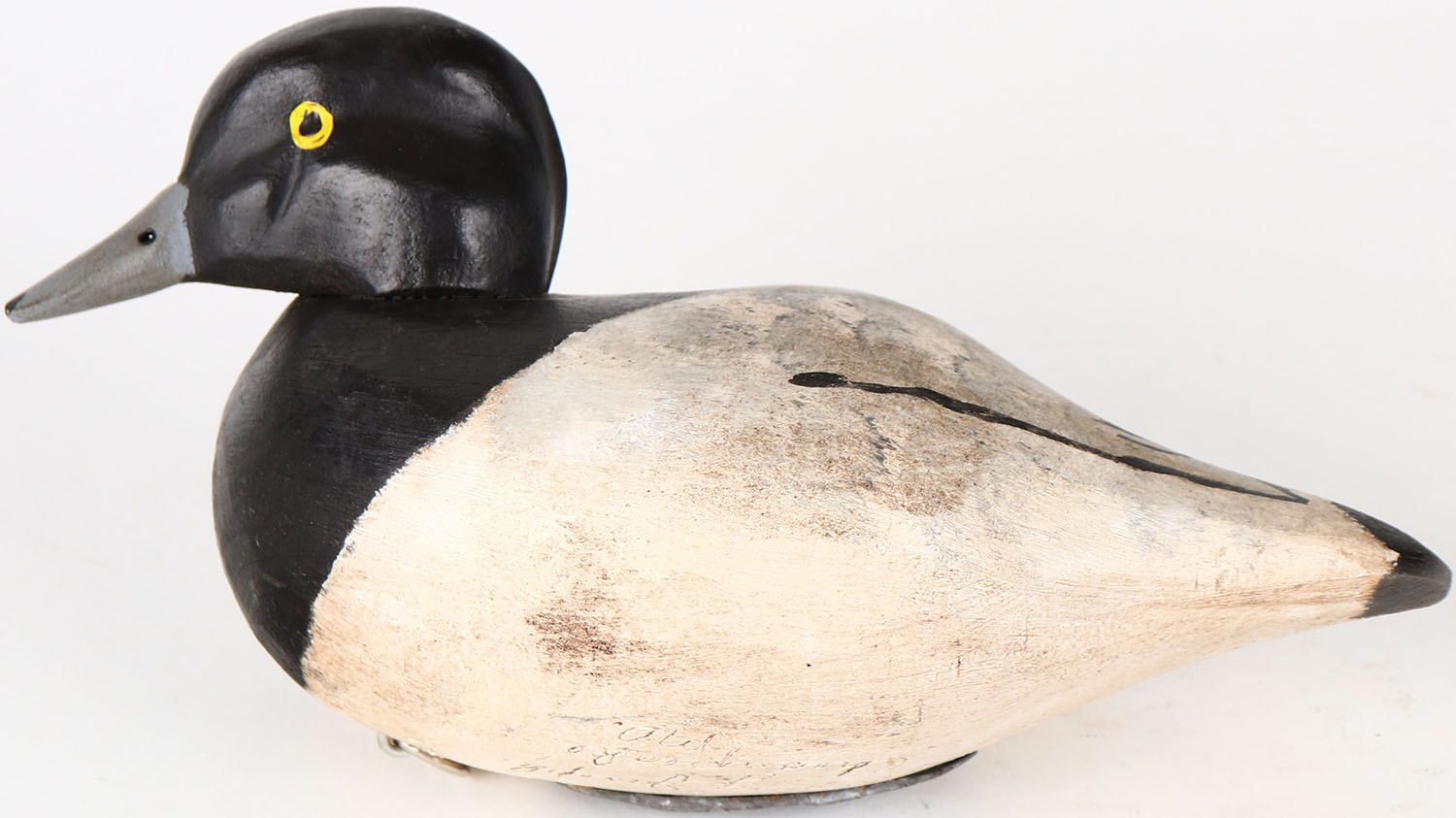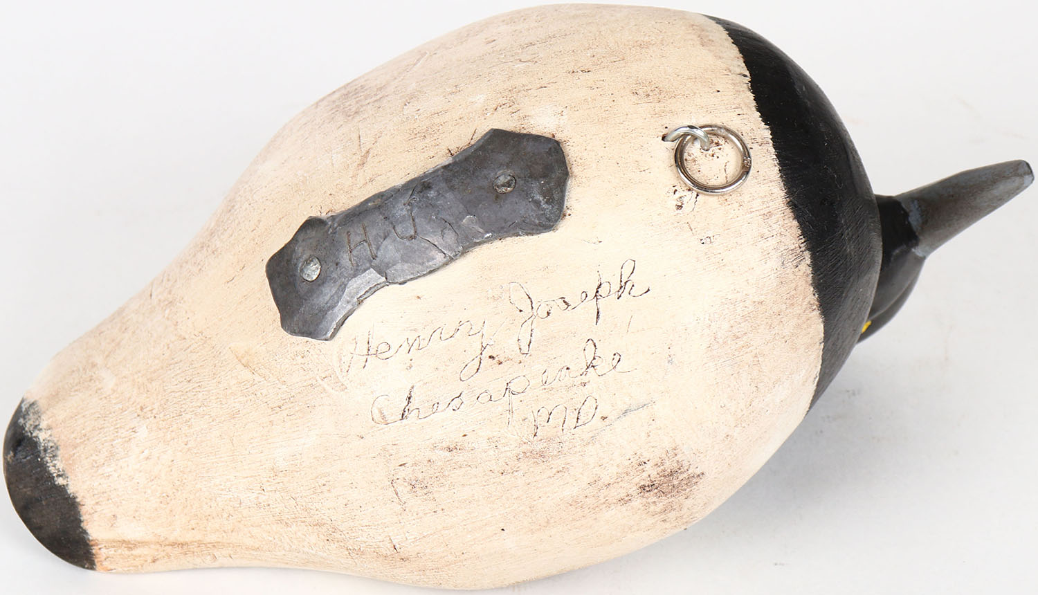 Bluebill Drake by Henry Joseph, Chesapeake MD., painted eyes, solid wood, structurally excellent, signed on bottom, original paint. Grade: MINT - Value: 40 to 80