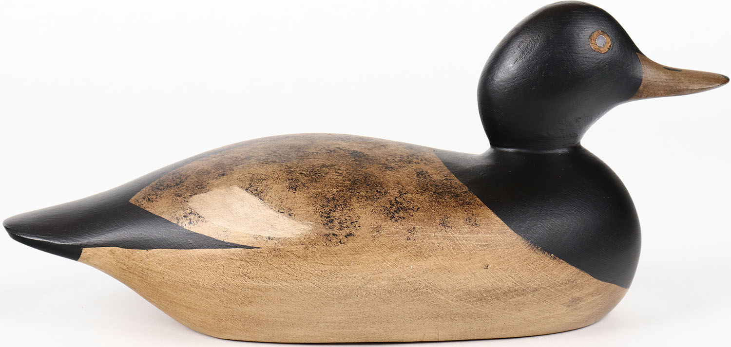 Bluebill Drake by Darkfeather Freedman, tack eyes, solid wood, structurally excellent, signed on bottom, original paint. Grade: MINT - Value: 50 to 100