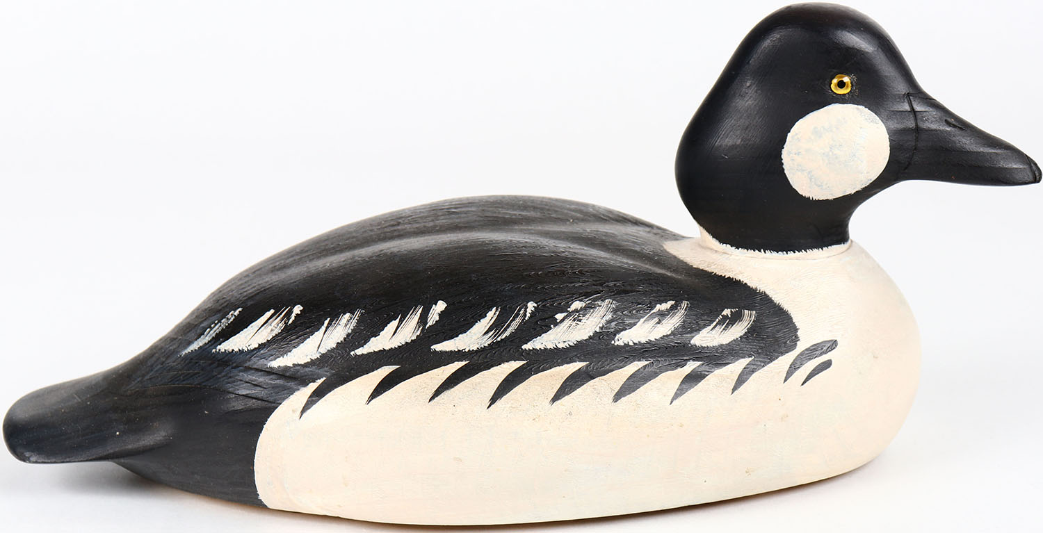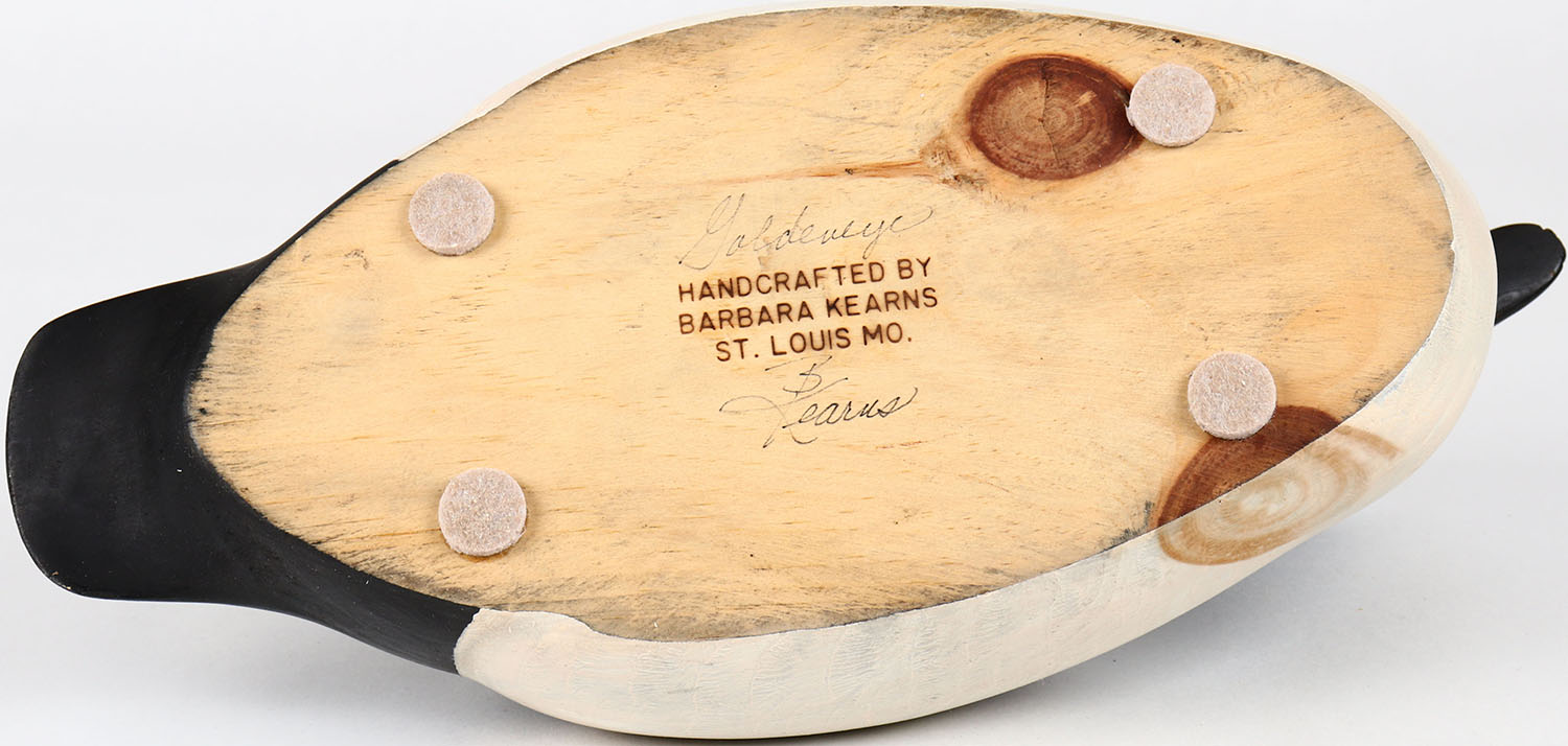 Goldeneye Drake by Barbara Kearns, St. Louis MO. glass eyes, solid wood, structurally excellent, signed on bottom, original paint. Grade: MINT - Value: 40 to 80