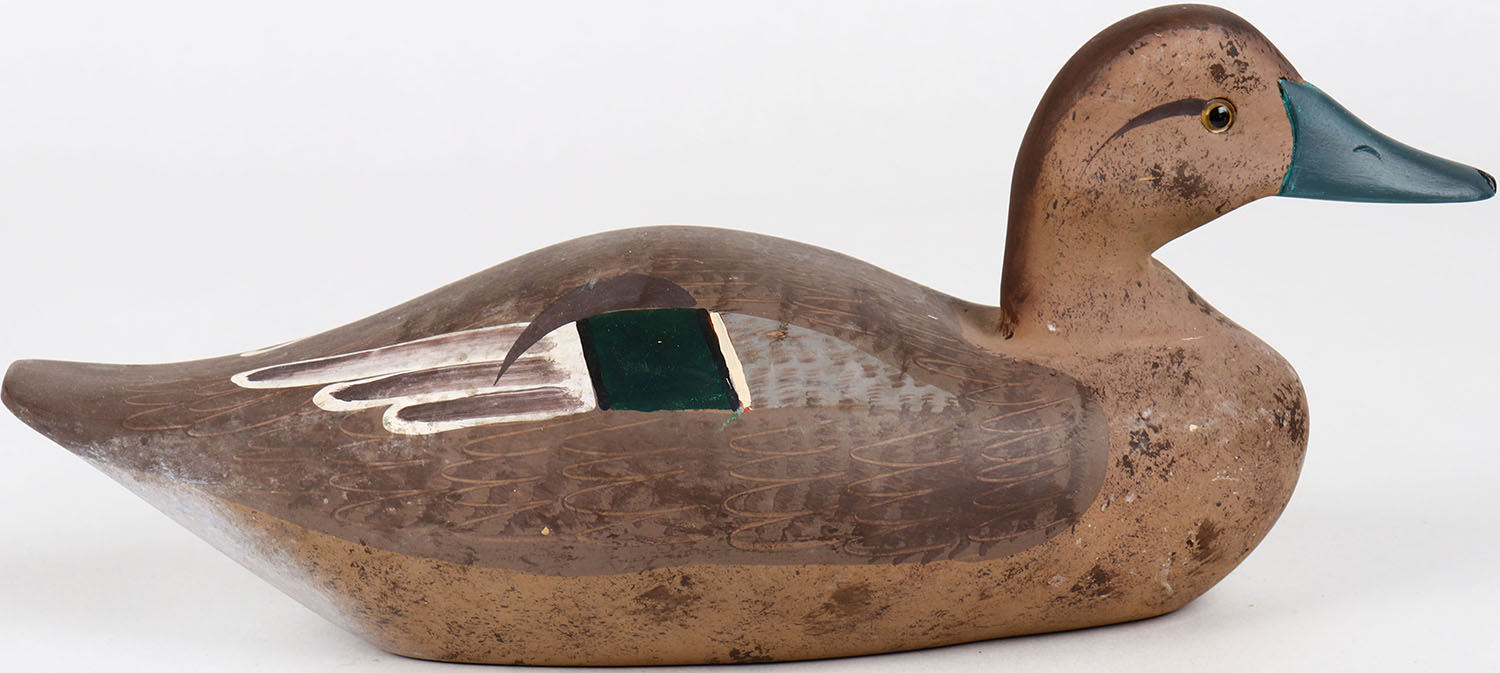Green Wing Teal Hen by unknown maker, glass eyes, solid wood, structurally excellent, original paint. Grade: MINT - Value: 40 to 80
