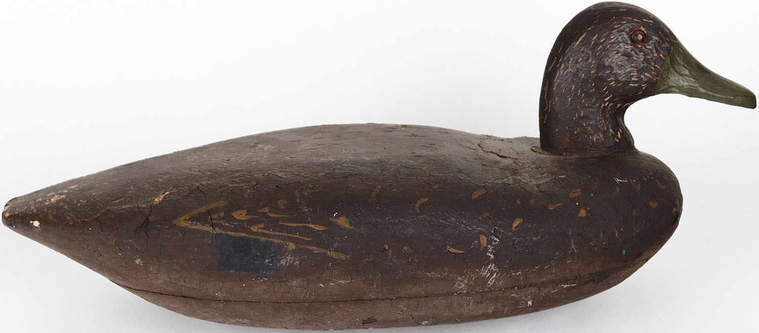 Mallard Hen by unknown maker, glass eyes, hollow wood, structurally excellent, original paint. Grade: Very Good ++ - Value: 30 to 60