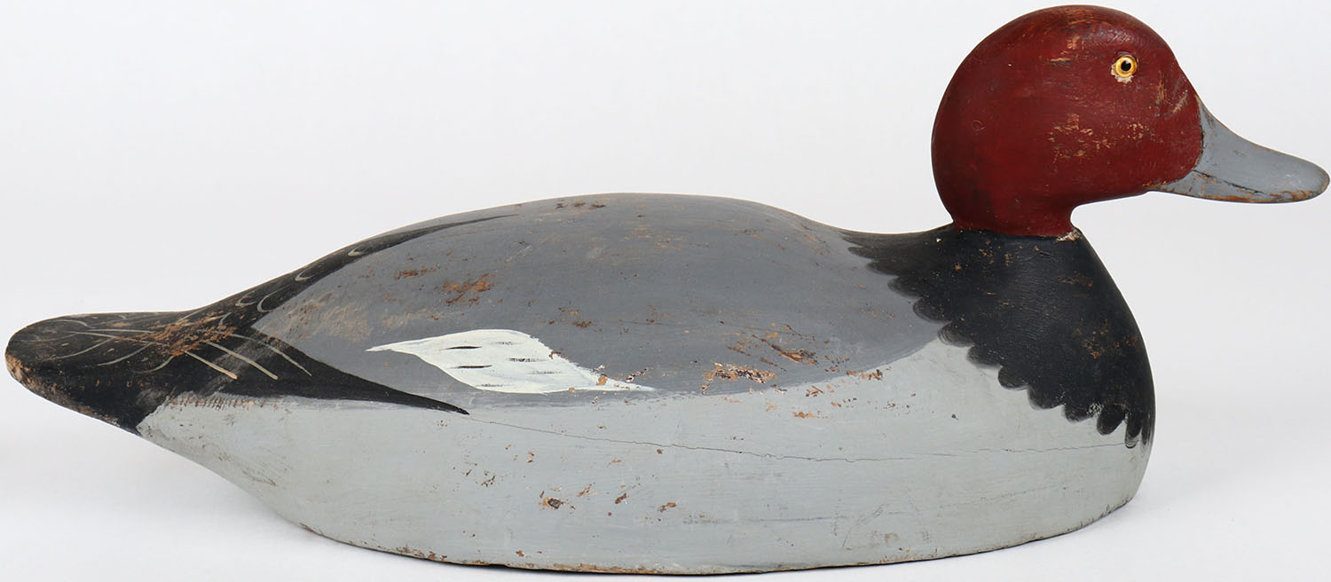 Redhead Drake by Mason Decoy Factory Backbay, glass eyes, solid wood, structurally excellent, original paint. Grade: Excellent - Value: 30 to 150