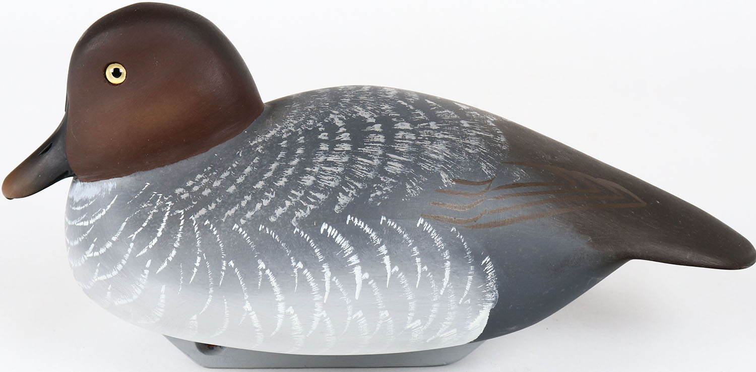 Goldeneye Hen by Bill Schauber, glass eyes, solid wood, structurally excellent, signed on bottom, original paint. Grade: MINT - Value: 40 to 80