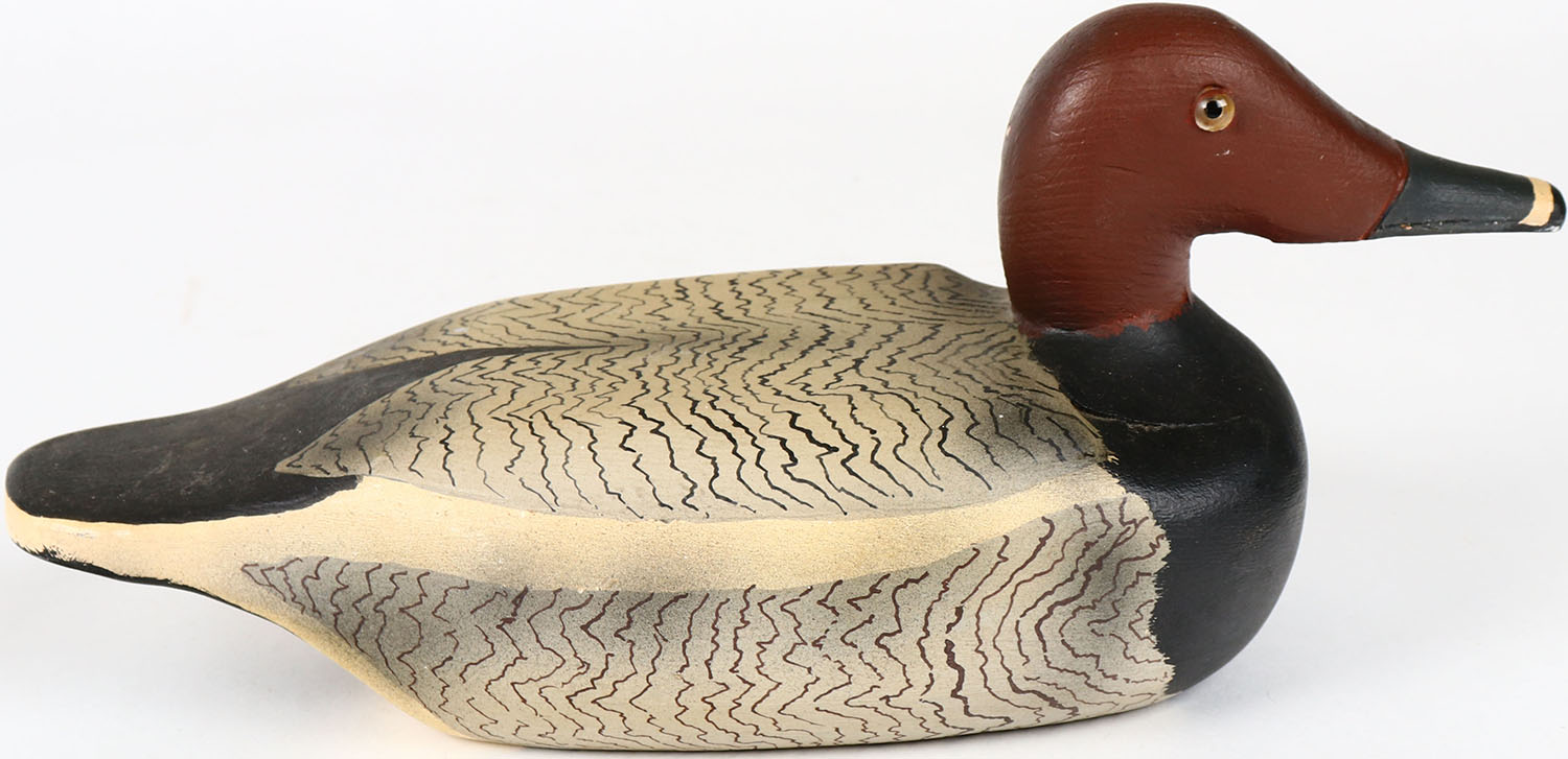 Redhead Drake by CC Cutting glass eyes, solid wood, structurally excellent, branded CC CUTTING on bottom, original paint. Grade: MINT - Value: 30 to 60