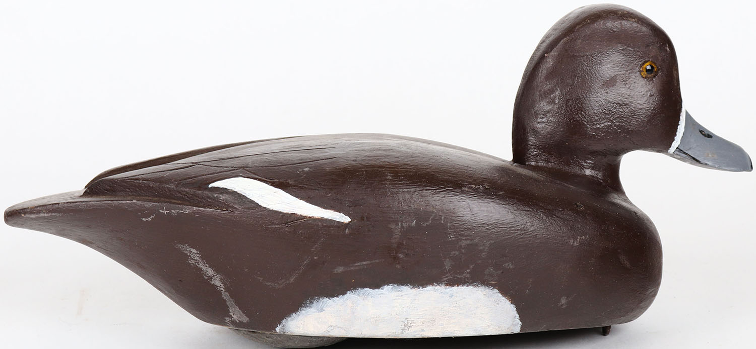 Bluebill Hen by unknown maker, CAN, glass eyes, solid wood, structurally excellent, original paint. Grade: MINT - Value: 50 to 100