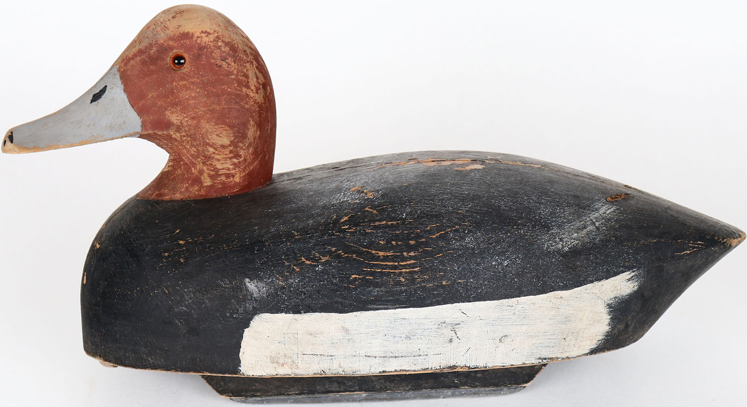 Redhead Drake by unknown maker, glass eyes, solid wood, has age crack on back and side, original paint. Grade: Very Good ++ - Value: 30 to 60