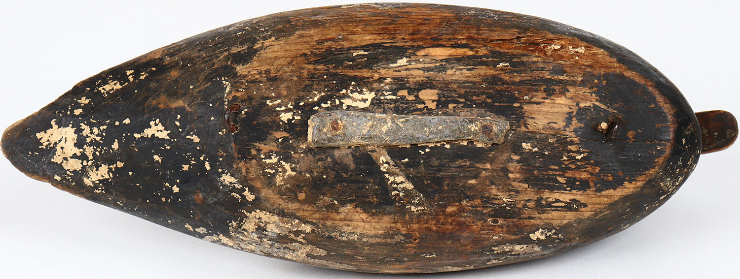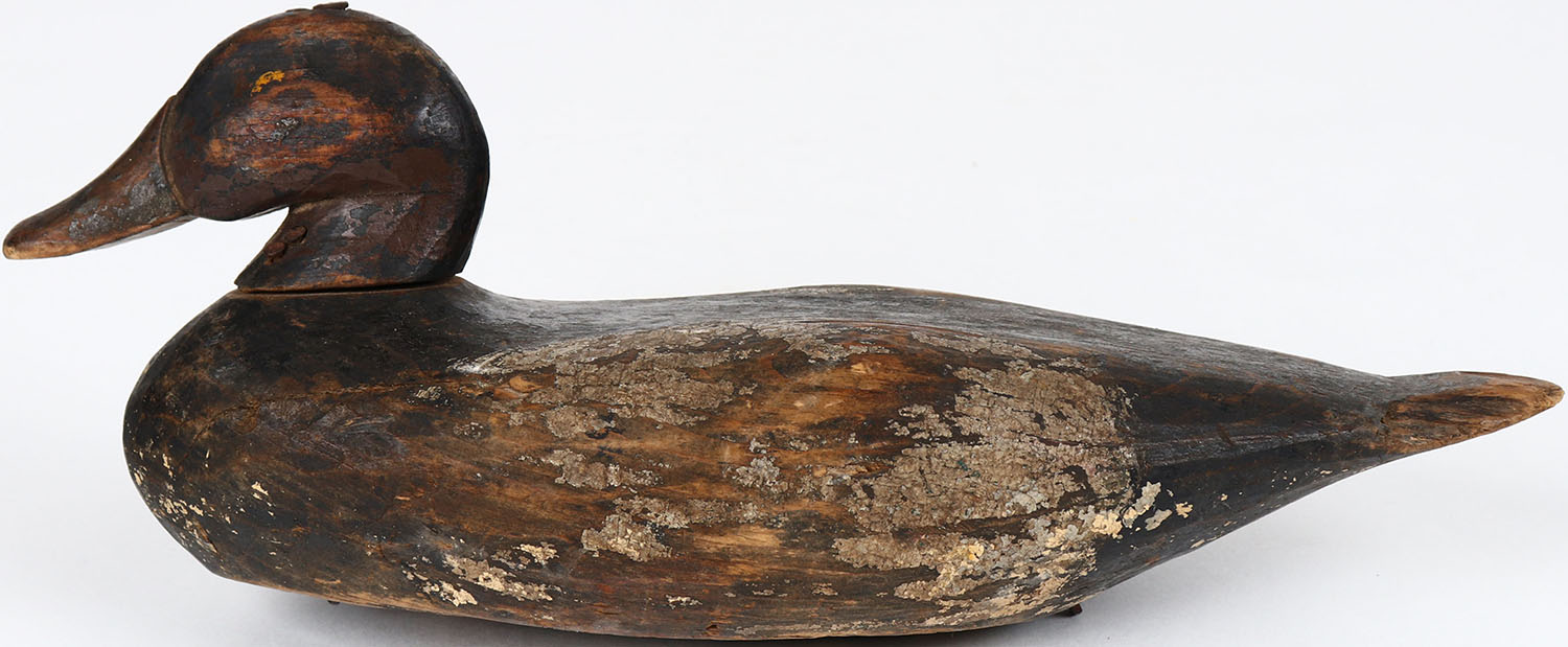 Bluebill Drake by unknown maker, glass eyes, solid wood, head is loose, original paint. Grade: Very Good - Value: 30 to 60