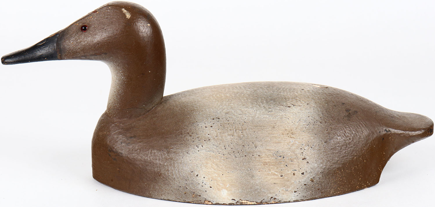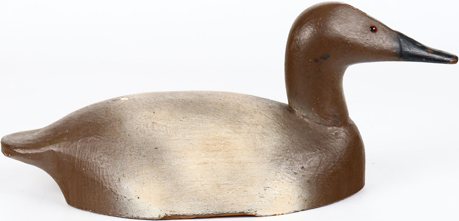 Canvasback Hen by Don Beverley, glass eyes, solid wood, structurally excellent, original paint. Grade: Excellent - Value: 40 to 80
