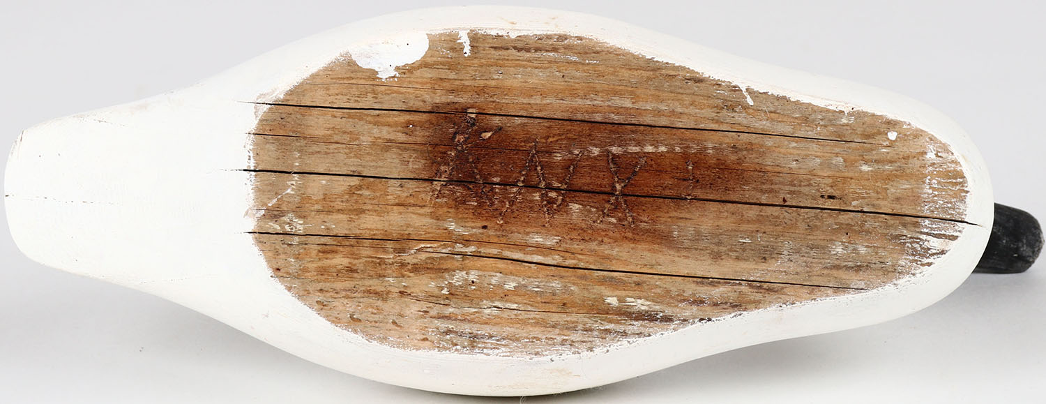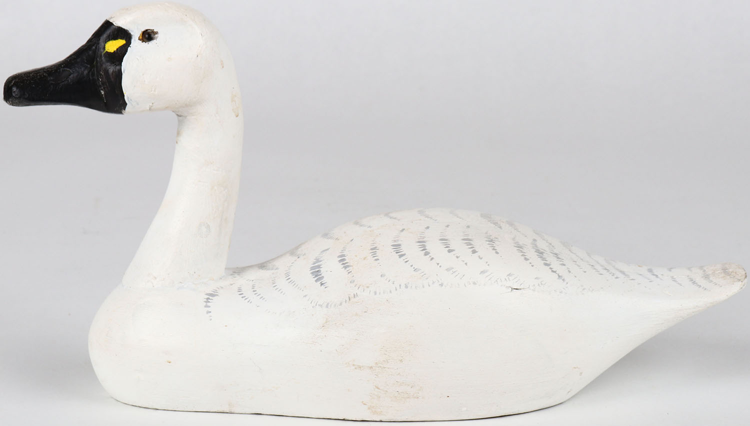 Miniature Swan by unknown maker, glass eyes, solid wood, structurally excellent, original paint. Grade: MINT - Value: 30 to 60