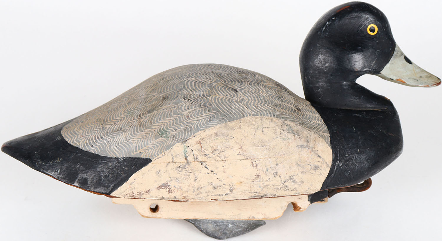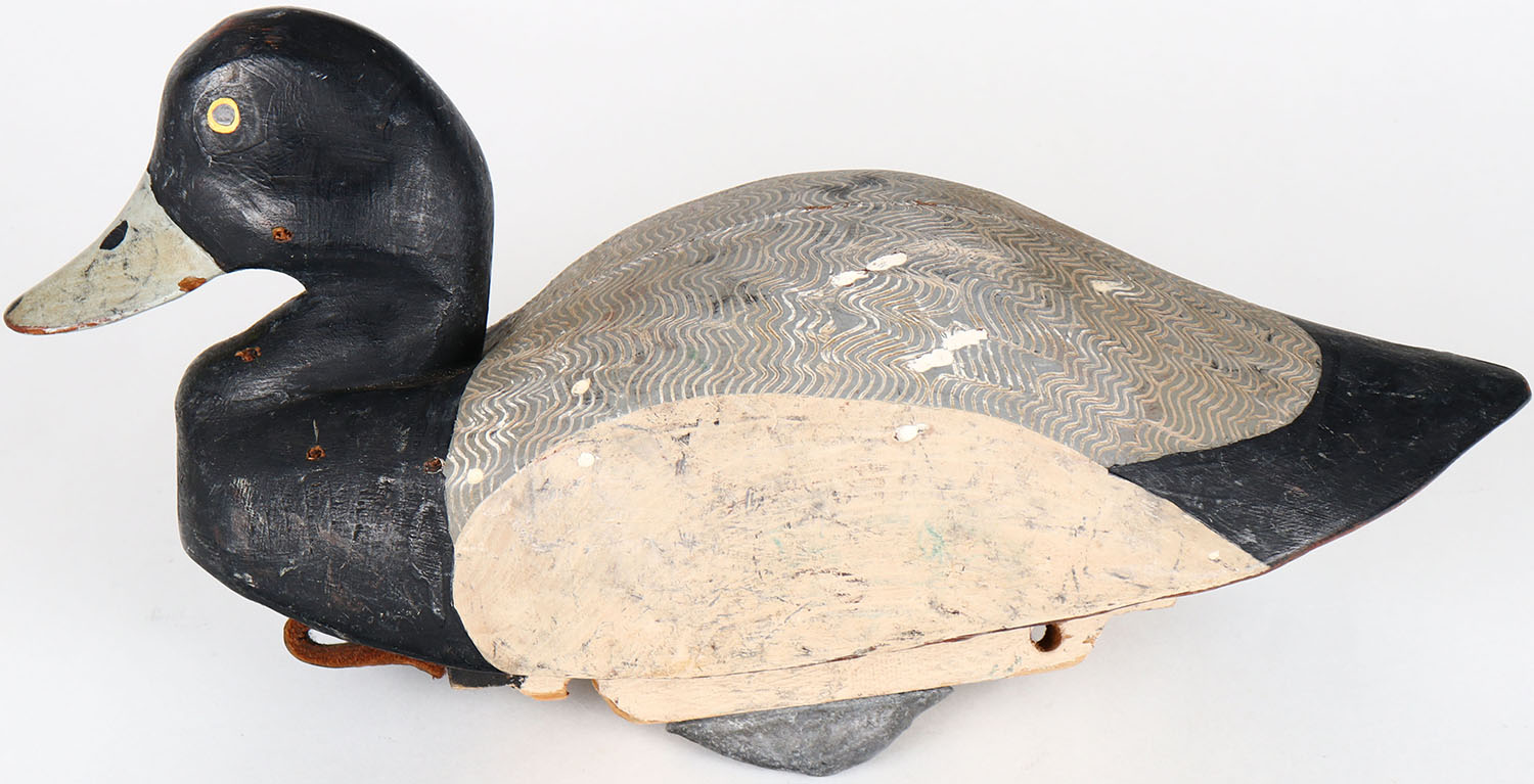 Bluebill Drake by unknown maker, painted eyes, solid wood, structurally excellent, original paint with comb painting. Grade: Excellent ++ - Value: 50 to 100