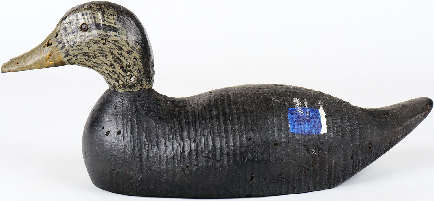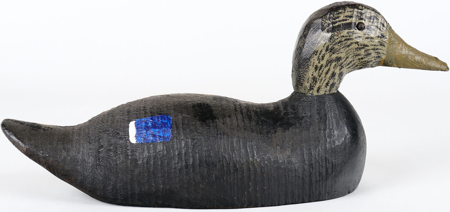 Black Duck by unknown maker tack eyes, hollow wood, structurally excellent, original paint. Grade: Excellent - Value: 30 to 60