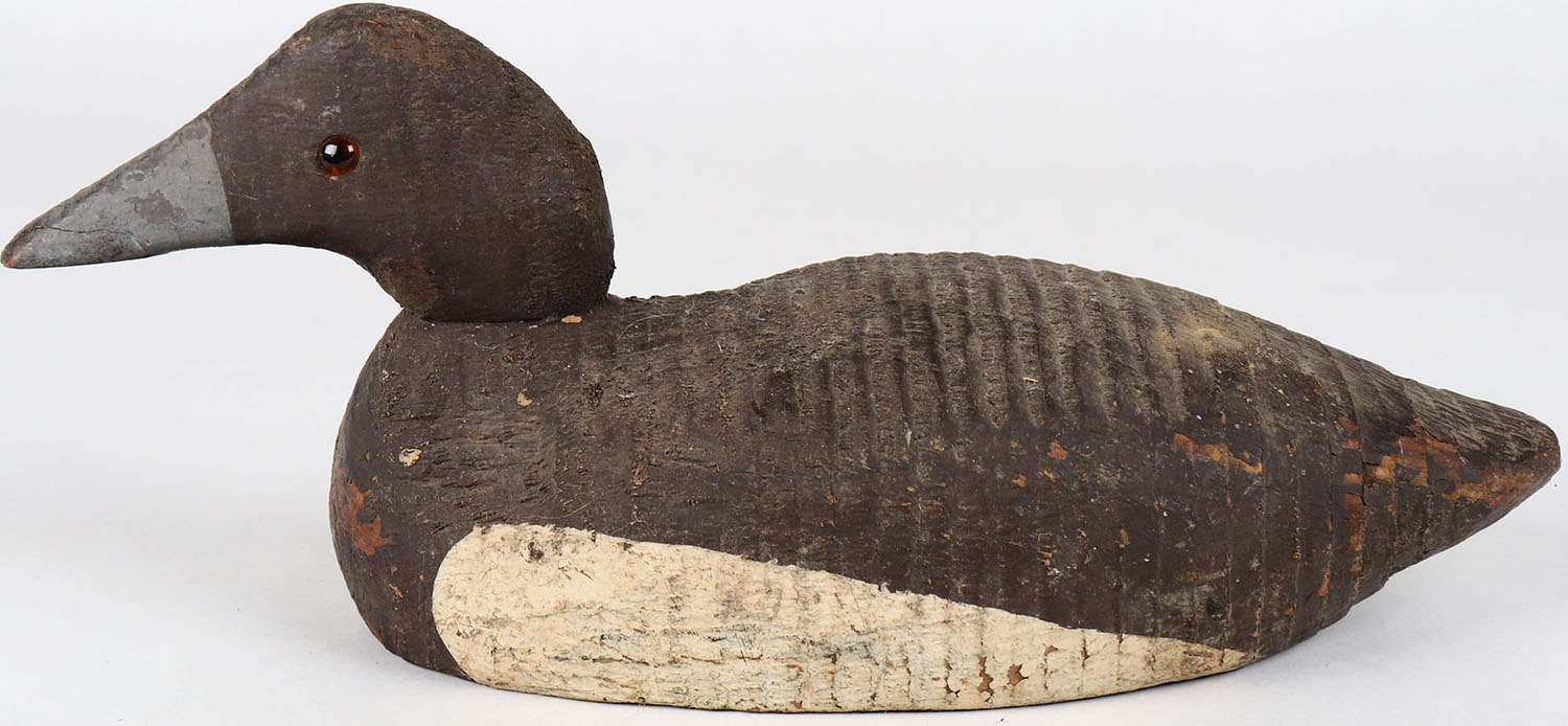 Bluebill Drake by unknown maker, glass eyes, solid wood, structurally excellent, original paint. Grade: Excellent + - Value: 30 to 60