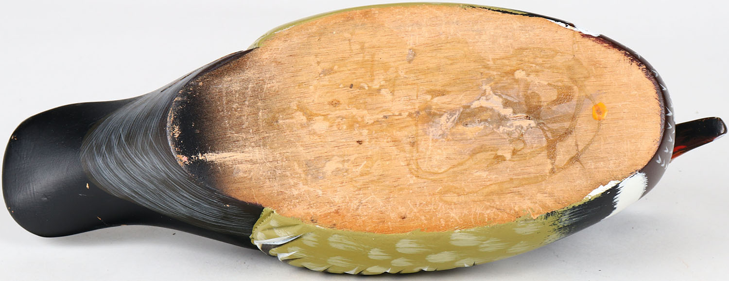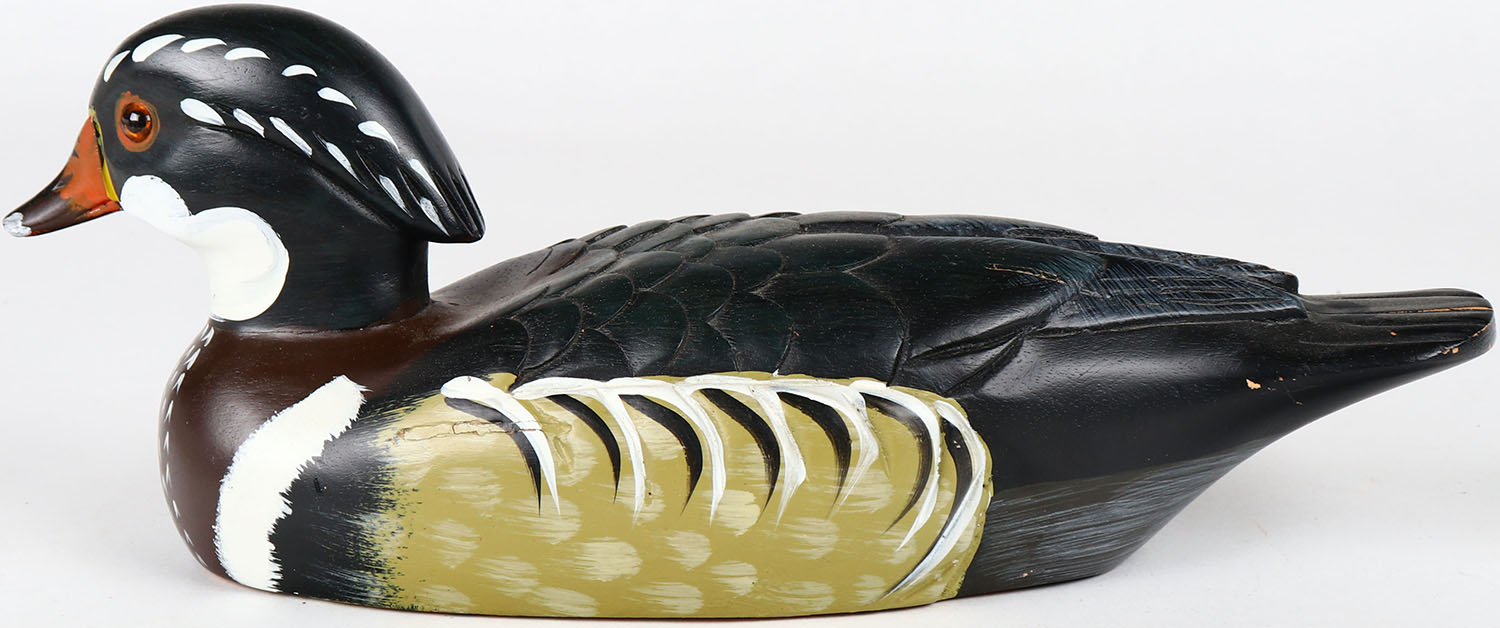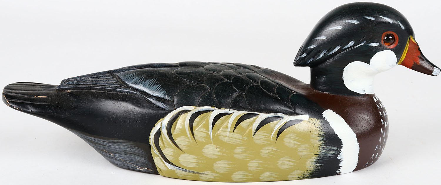 Wood Duck Drake by unknown maker, glass eyes, solid wood, structurally excellent, original paint. Grade: MINT - Value: 40 to 80