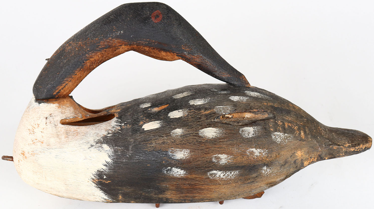 Sleeping Loon by John H. Culp, Columbia, Penna, painted eyes, solid wood, structurally excellent, original paint. Grade: Very Good ++ - Value: 40 to 80