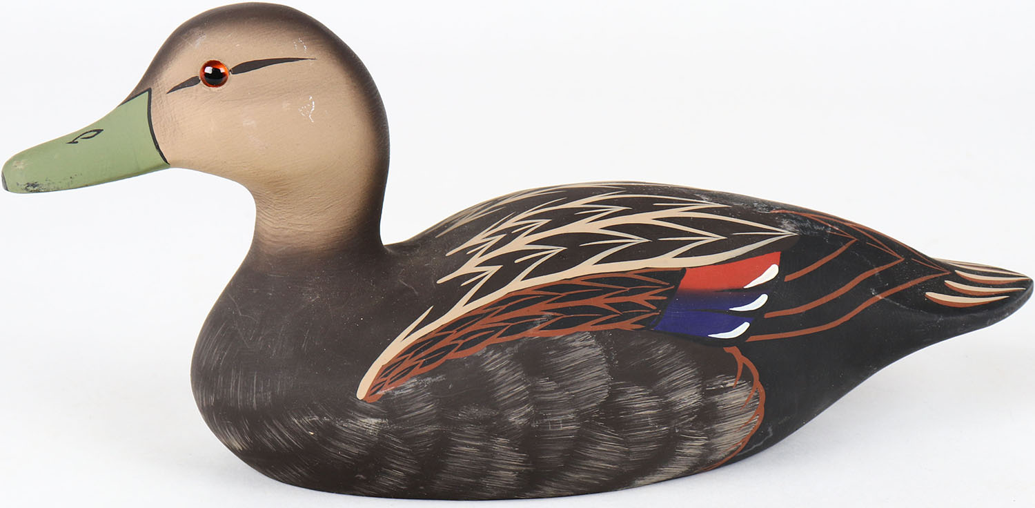 Gadwall Drake by Lisa Byrd, Stoney Point Decoys, glass eyes, solid wood, structurally excellent, branded and signed on bottom, original paint. Grade: MINT - Value: 40 to 80