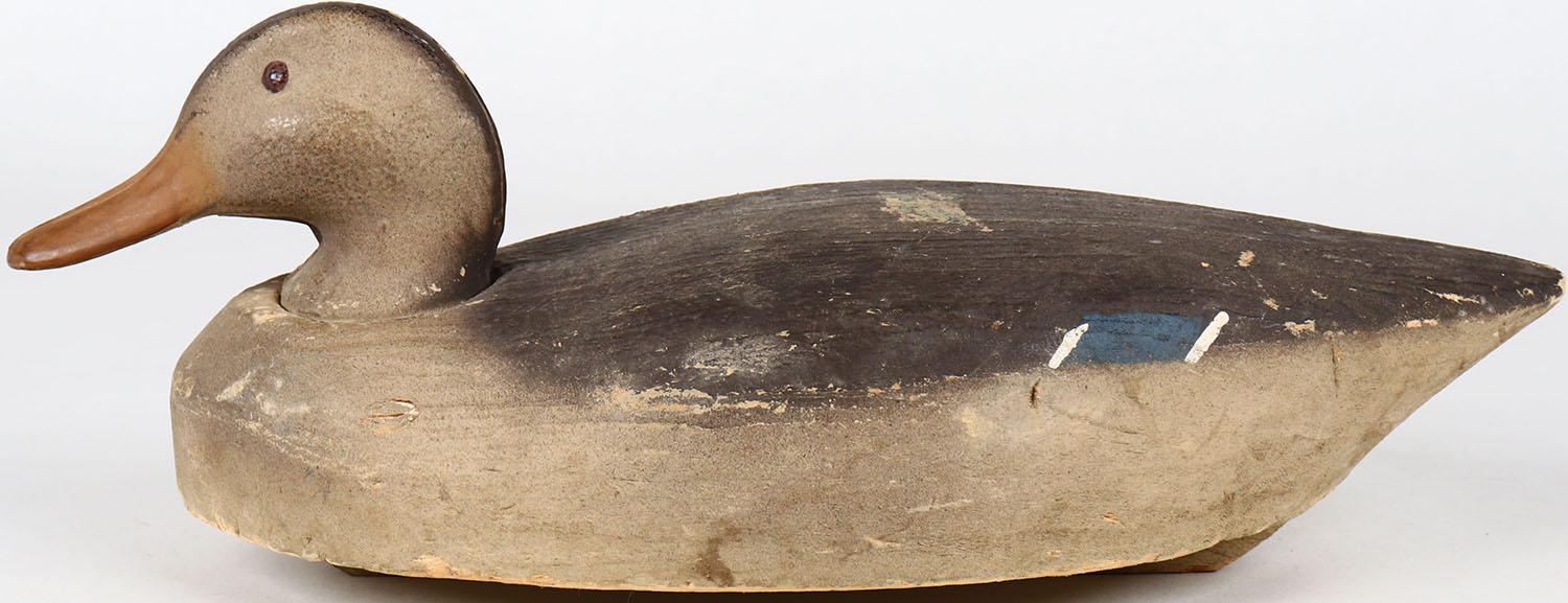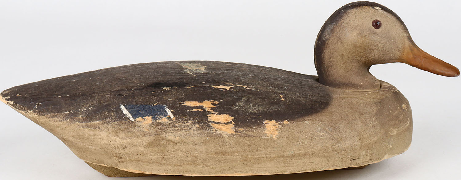 Mallard Hen by Herters, painted eyes, solid styrofoam, head is loose, original paint. Grade: Very Good + - Value: 10 to 30