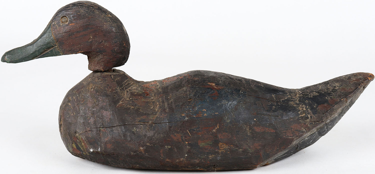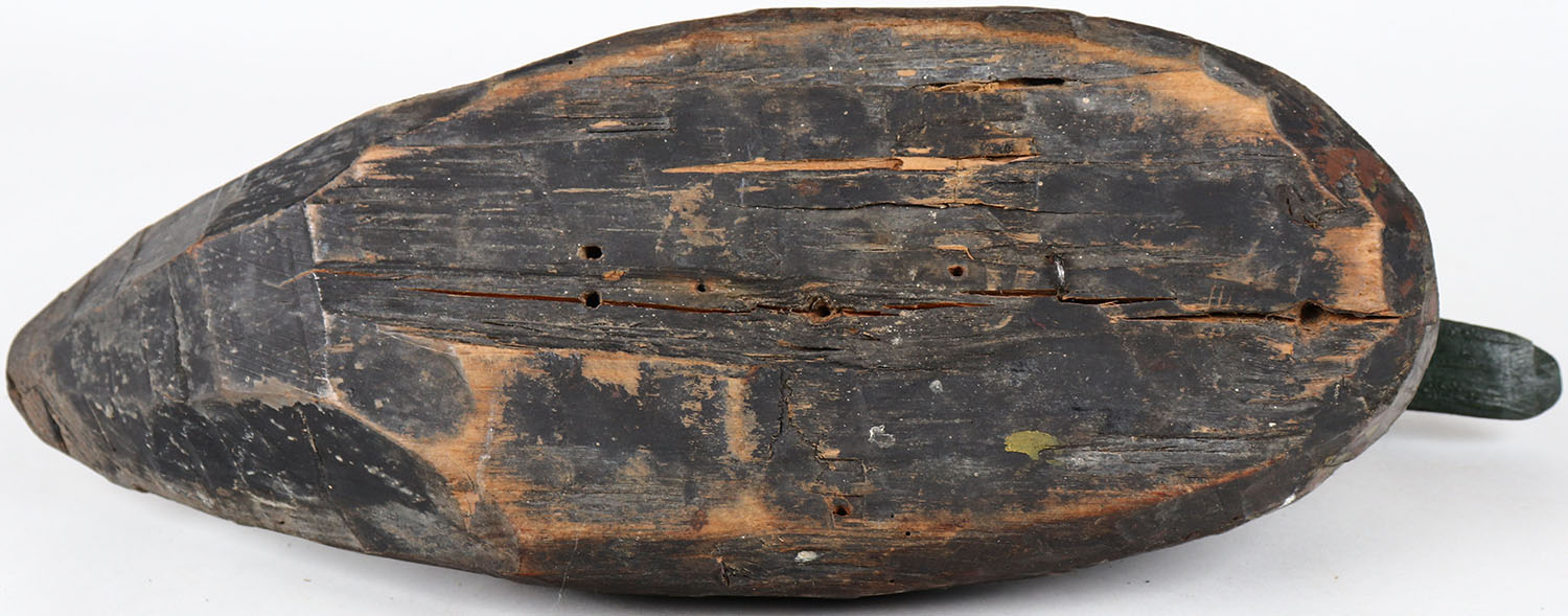 Pintail Drake by unknown maker, tack eyes, solid wood, head is loose, original paint. Grade: Very Good - Value: 30 to 60