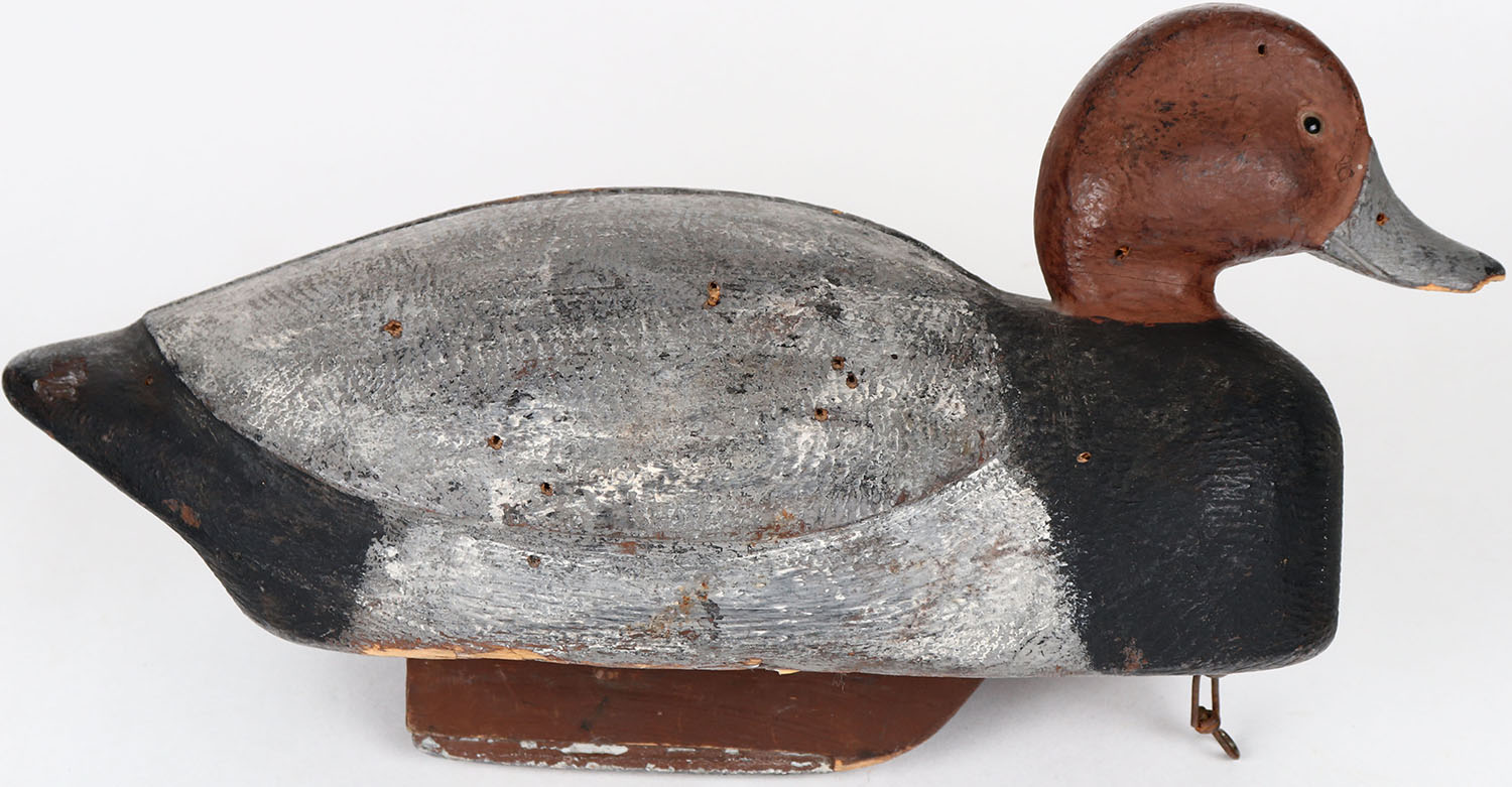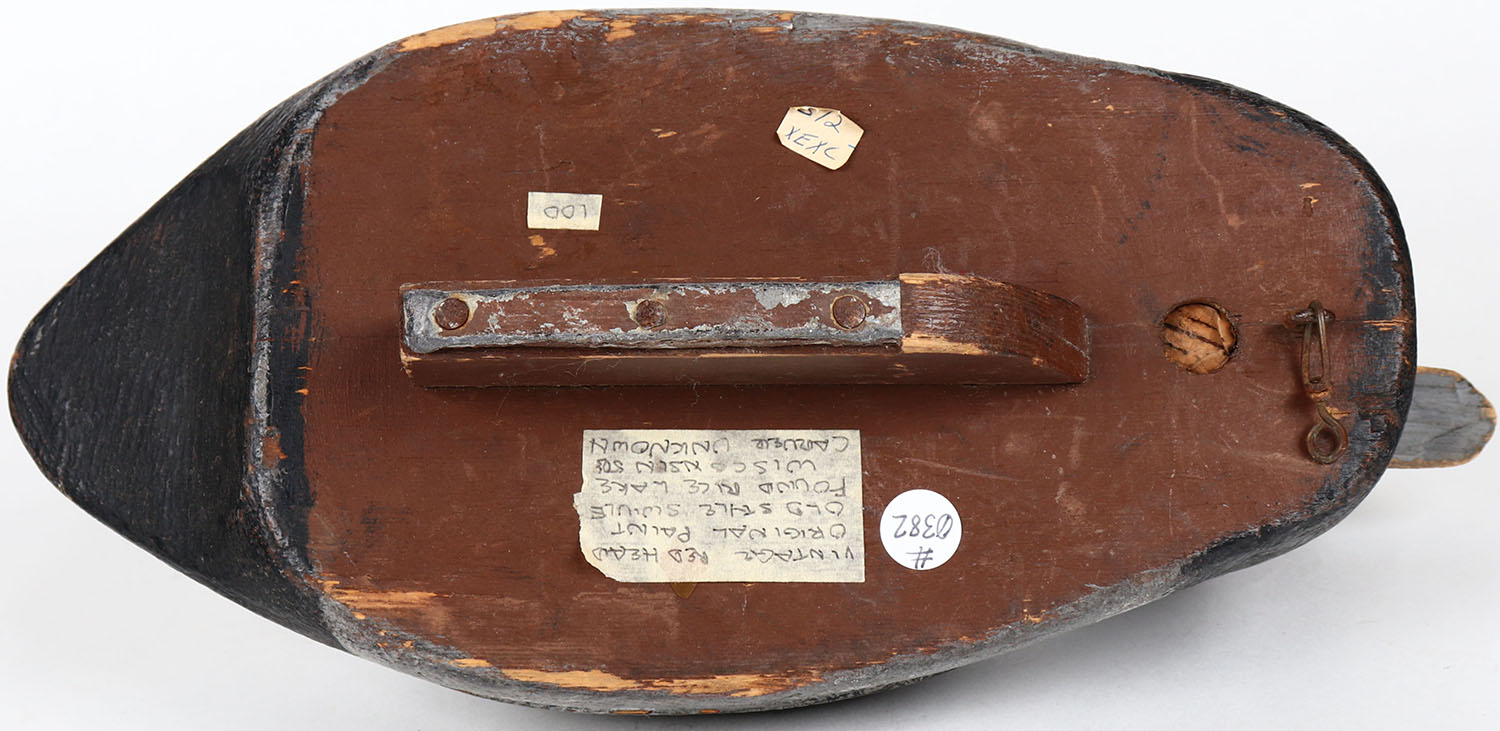 Redhead Drake by unknown maker, glass eyes, solid wood, structurally excellent, original paint. Grade: Excellent + - Value: 50 to 100
