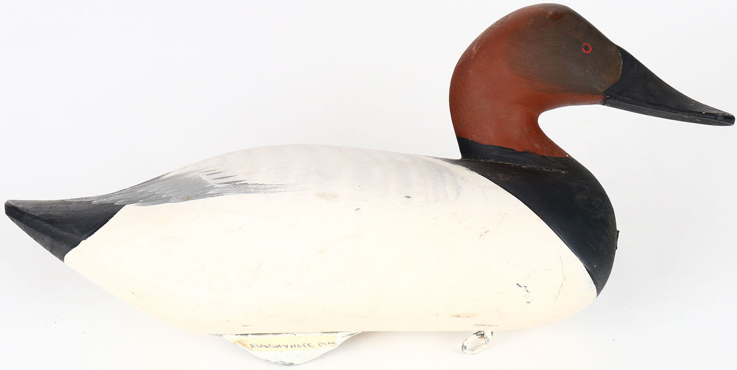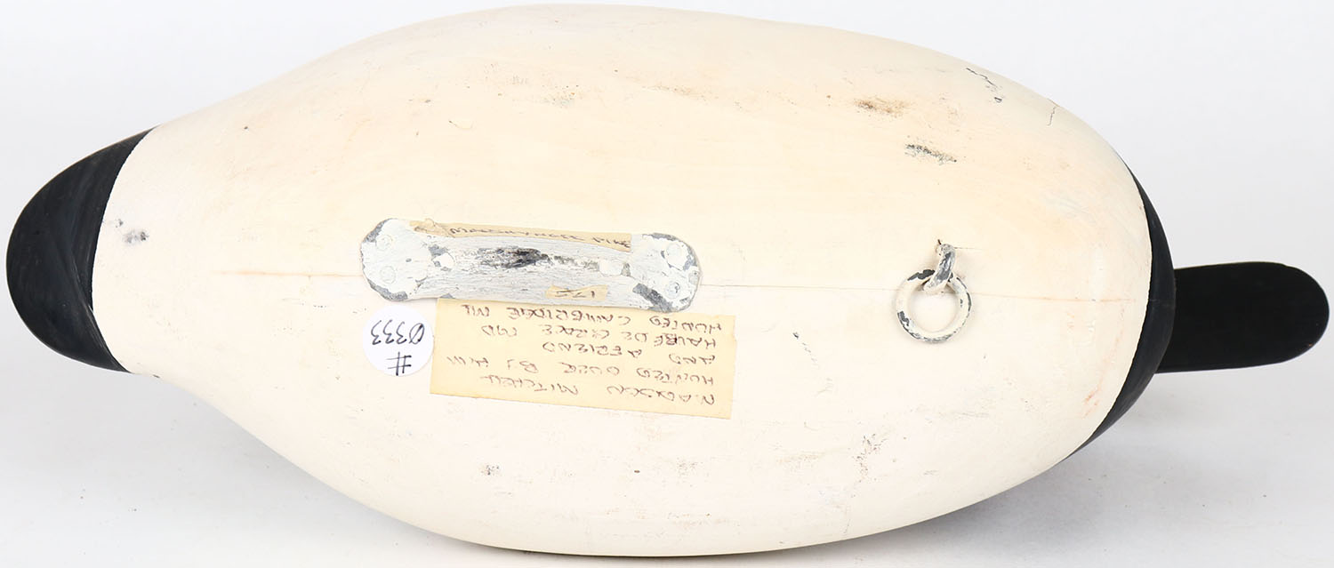 Canvasback Drake by Madison Mitchell Havre De Grace MD, painted eyes, solid wood, structurally excellent, signed on bottom, original paint. Grade: MINT - Value: 150 to 600