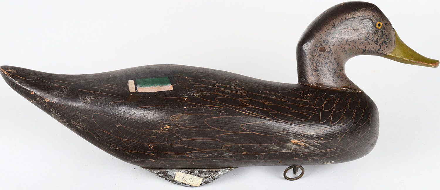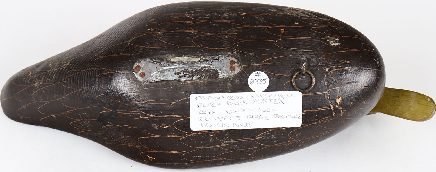 Black Duck by Madison Mitchell, Havre de Grace, MD, painted eyes, solid wood, structurally excellent, signed on bottom, original paint. Grade: Excellent ++ - Value: 150 to 600