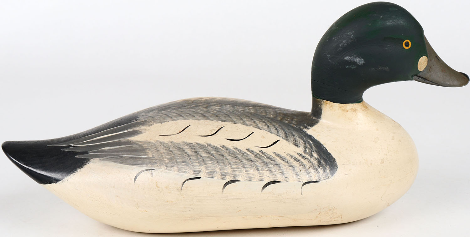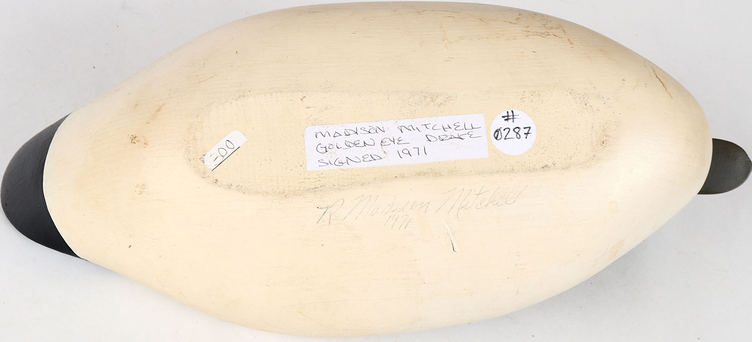 Goldeneye Drake by Madison Mitchell, painted eyes, solid wood, structurally excellent, signed on bottom, original paint. Grade: MINT - Value: 150 to 600