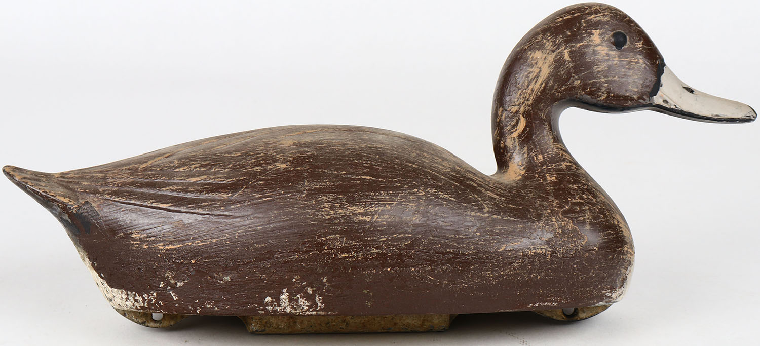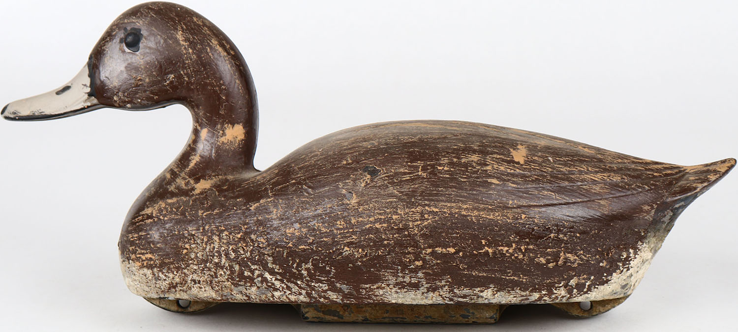 Bluebill Hen by unknown maker, Ontario, CAN, tack eyes, plastic, structurally excellent, signed on bottom, original paint. Grade: Very Good ++ - Value: 20 to 40