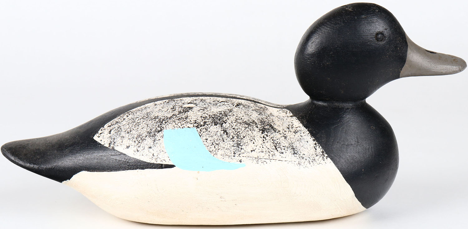 Bluebill Drake by Mason Decoy Co., MI, tack eyes, solid wood, structurally excellent, repaint. Grade: MINT - Value: 30 to 60