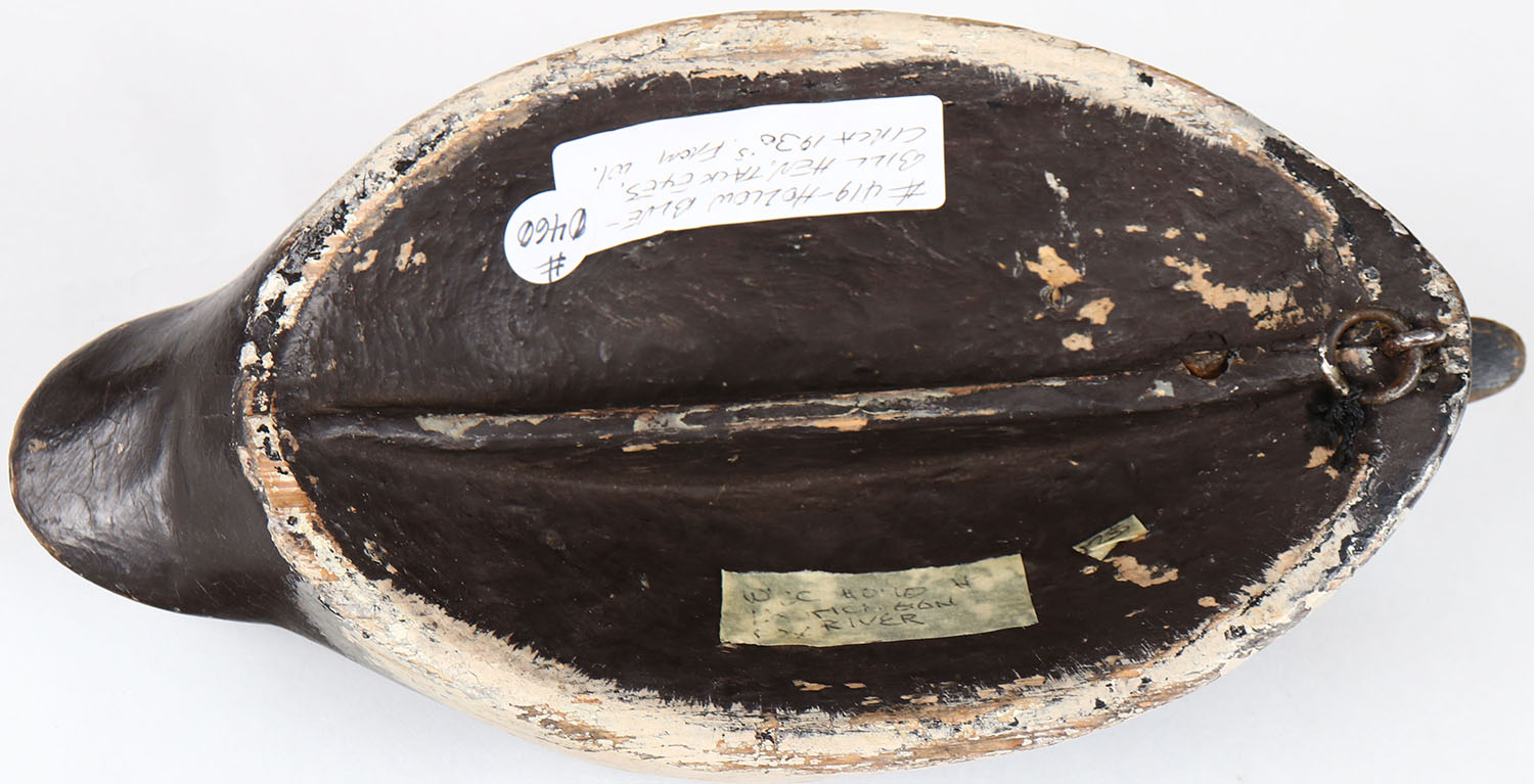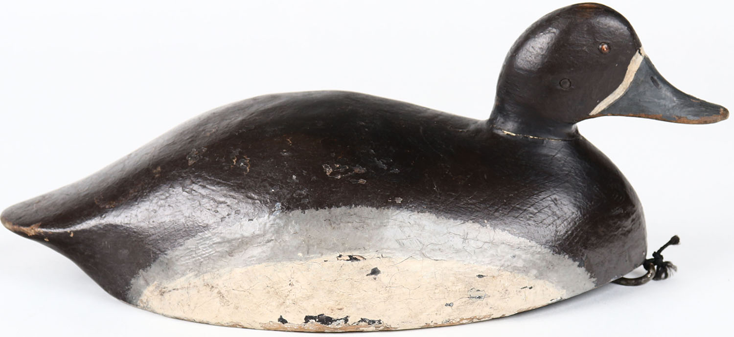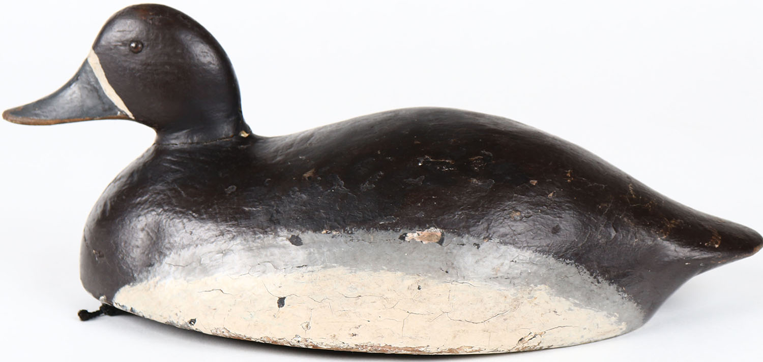 Bluebill Drake by unknown maker, Fox River WI, tack eyes, hollow wood, structurally excellent, signed on bottom, original paint. Grade: Very Good ++ - Value: 70 to 200